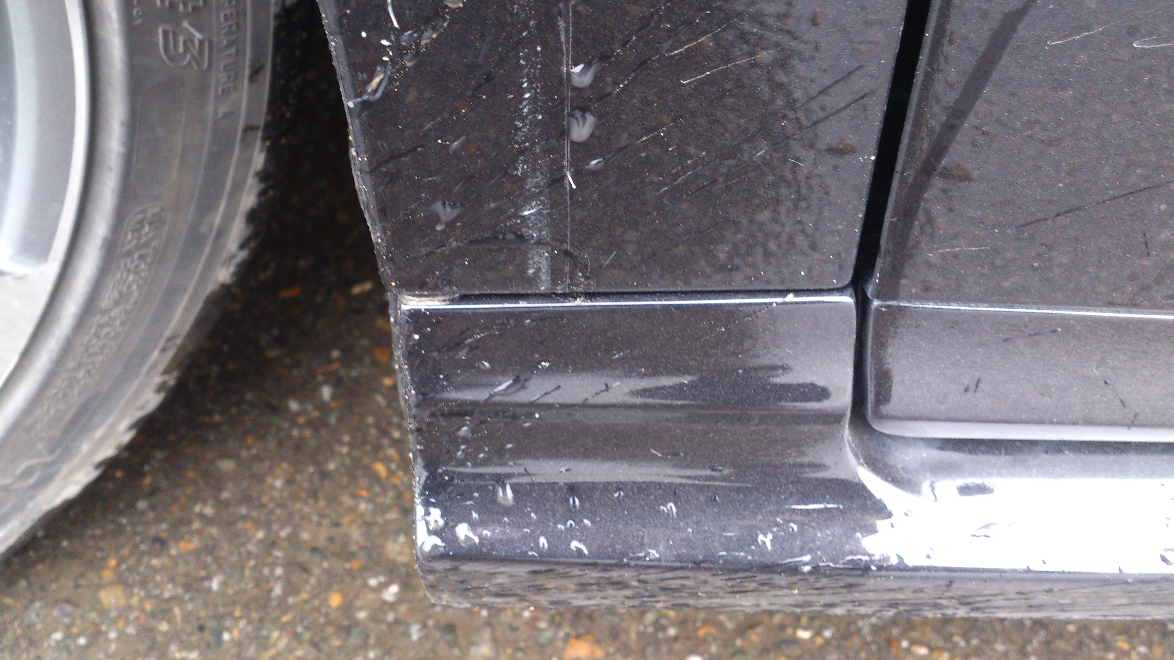 Через недельки полторы приезжаю за машиной все покрашено все на месте, скажу картина меня улыбнуласпросил, что и как ( так сказать за рекламу мне никто не платит) скажу как есть задняя юбка прям отлично встает без претензий, а вот пороги это гемор еще тот, как я и описывал Евгению им как бы не хватает длины, если брать переднее колесо и одевать в стыке, то где заднее колесо будет уже не встык на фото будет...