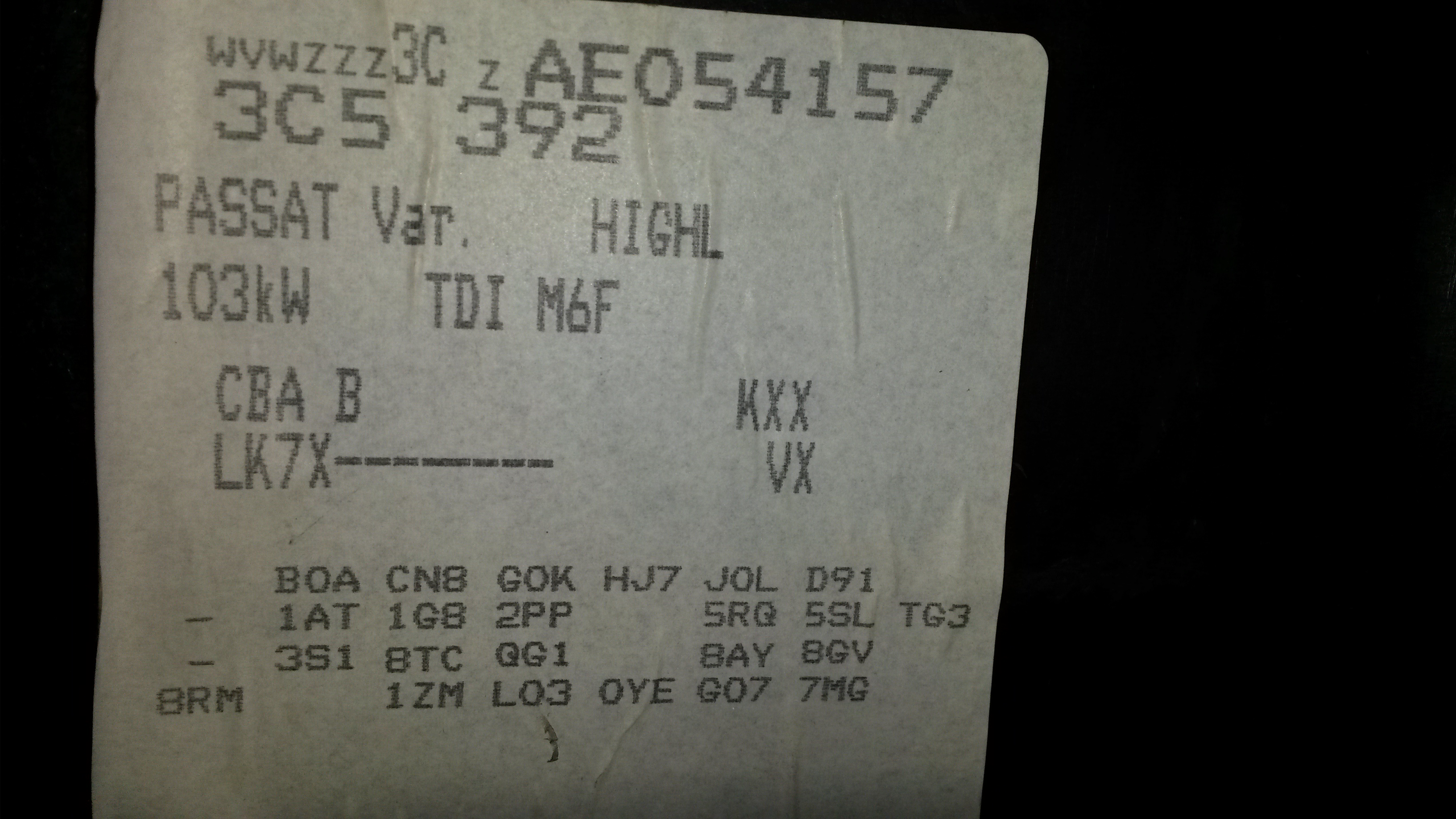 Доброго времени суток. У меня вот недавно приобретенный Пассат Б6 2009г. 1.8 TSI МККП. Никак не могу узнать какой двигатель стоит и какая коробка. Можете помочь? )))docalex писал(а):Для начала изучите буковки моторов вага, почитайте отзывы, так же и коробки. Например 1,8 есть CDA, а есть BZB, но один масло жрет, а другой нет. Так же и по коробкам, есть айсин, есть ДСГ 7, есть ДСГ 6 и между ними огромная разница, и дизеля 2,0 с насос форсунками и комон рейл, разница большая. После этого можно искать.