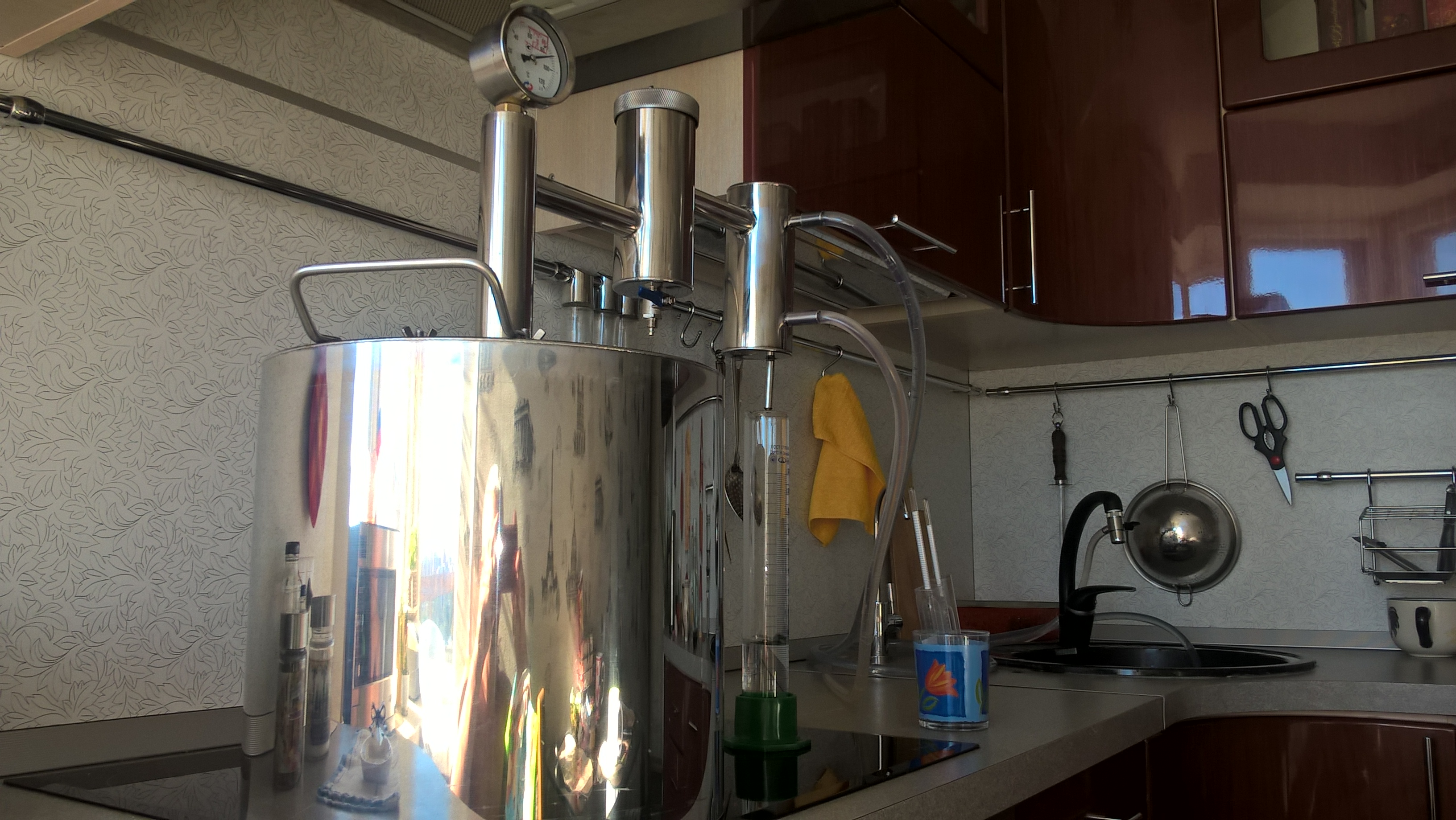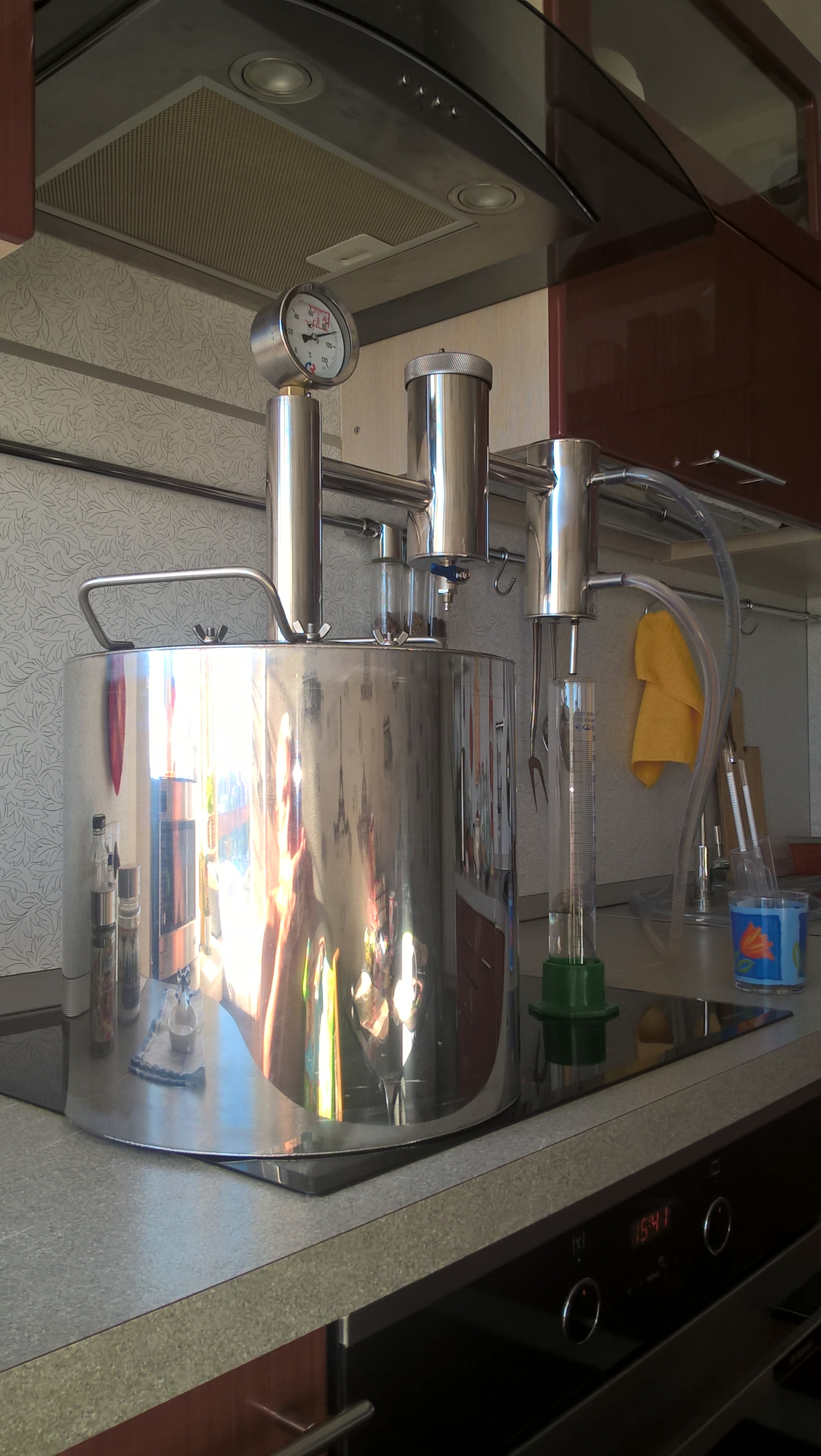 Прибор показывает температуру испаряемого из браги дистилята ( паров ) , вторая х@евина - сухопарник , третья - холодильник . Все просто , и штырит не по детски