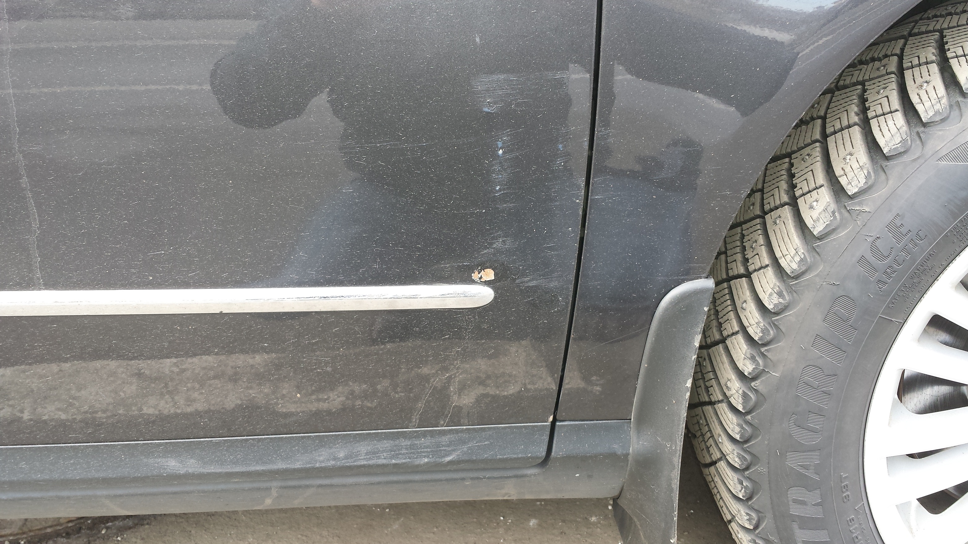 Озвучьте цену пожалуйста. На фото сколы на передней пассажирской двери вместе с царапинами и там еще краска как-то счесона. Также скол на заднем левом кле снизу.
