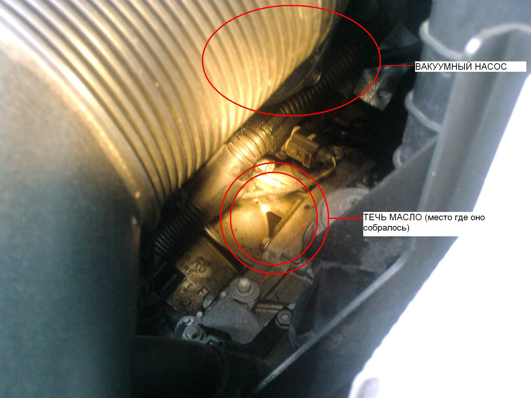 Всем привет... Обнаружил течь масло в районе под вакуумным насосом... масло скопилось как я понимаю на блоке коробки передач в местечко на фото... и проверил под вакуумным насосом и да дествительно от туда оно просачивается как я заметил оссобено после интенсивной езды... но дело в том что я эту прокладку менял пару тысяч назат... так в чем вопрос... может там еще прокладка есть...?