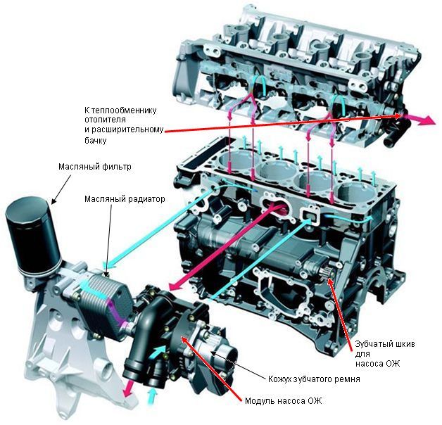 Крепится модуль ОЖ непосредственно на блок цилиндров.