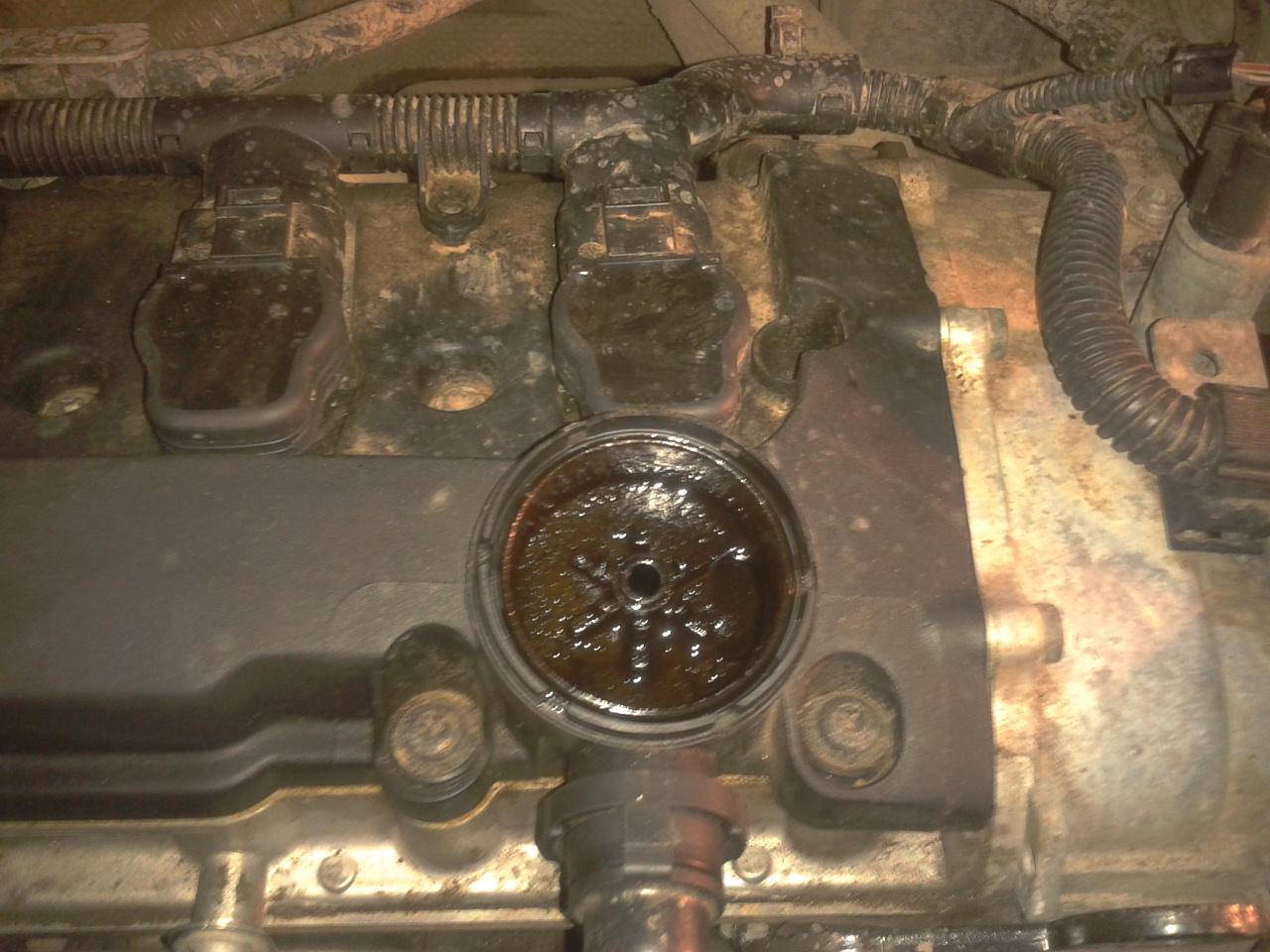 . Но естественно возникла следующая проблема, трубка которая идёт от клапанной крышки к двигателю лопнула в двух местах, сверху замотал изоленотой временно, а снизу я так и не увидел куда она идёт, но там тоже она лопнута, как я понял надо будет снимать впускной коллектор чтобы её поменять