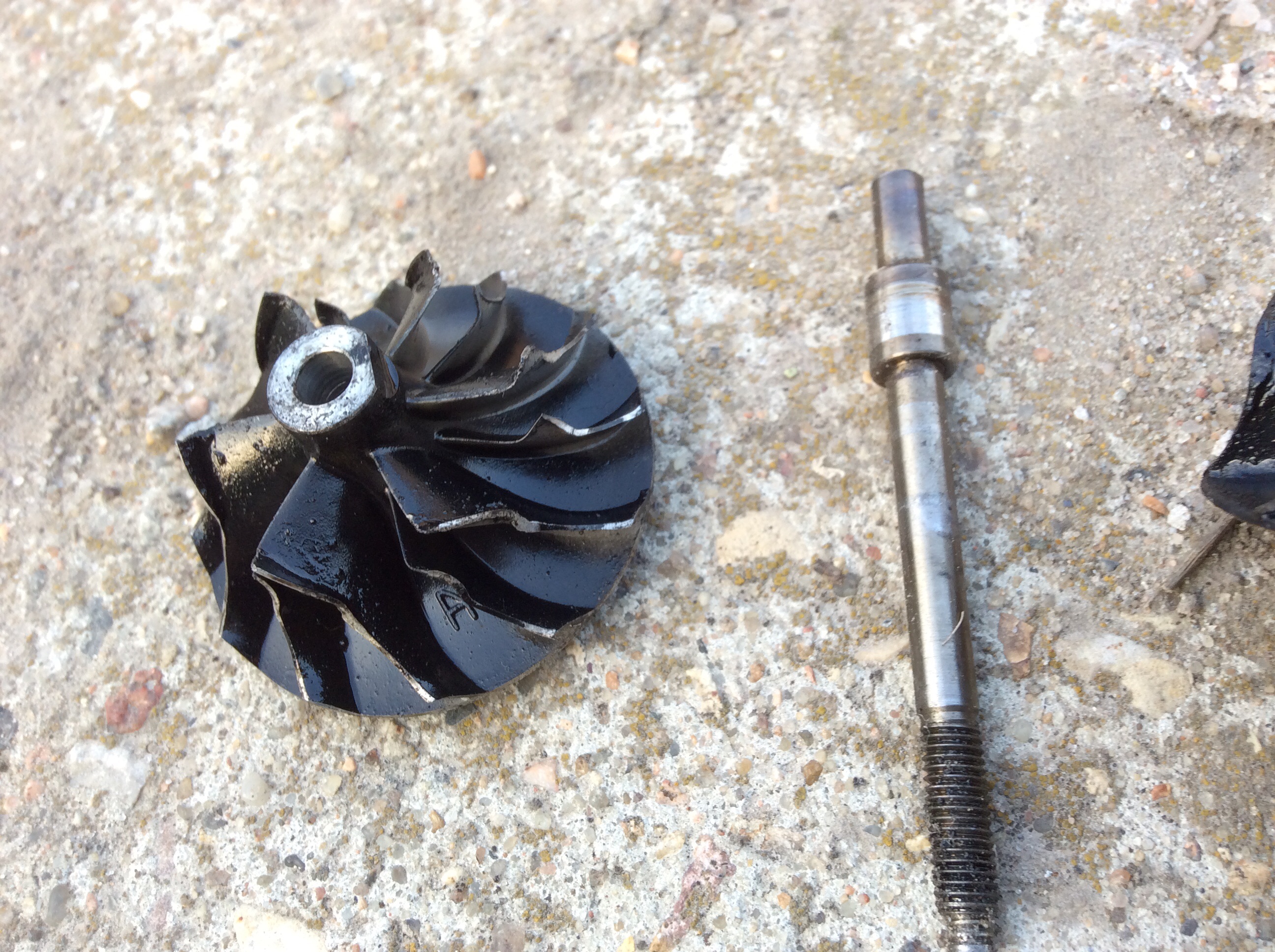 На следующий день поменяли насос (Pierburg 728303600) и привез масло. Долили почти 2 литра. Но машина работать все равно не захотела. И за машину взялся диагност. Выяснилось, что в двигатель не поступает воздух: при отключенной турбине двигатель работает, с нею - нет. В турбине заклинило (как потом выяснилось - обломало) вал в районе крыльчатки ОГ. Турбину сняли, сегодня отдал ее турбинистам. На выхлопном коллекторе турбины от одного из цилиндров были видны масляные следы. На остальных - нет.