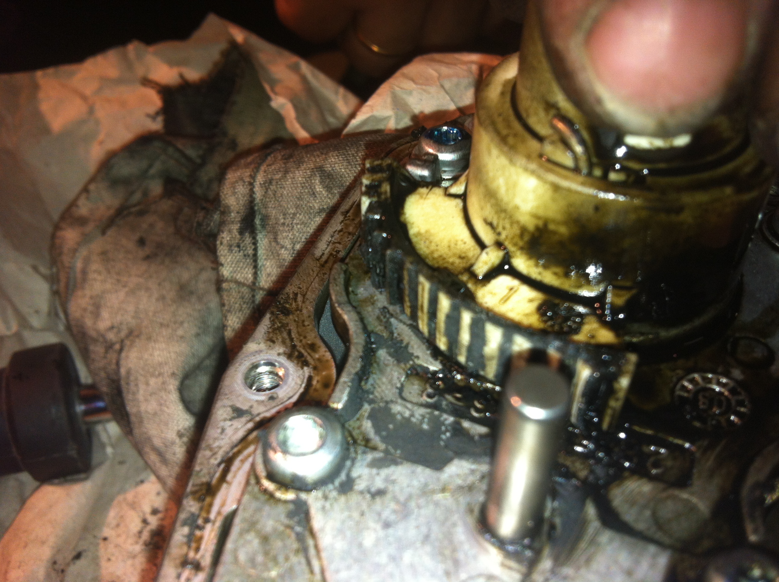 В общем снял все это хозяйство и начал рассматривать, загрязненность системы средняя, присутствуют отложения как на заслонке, так и на клапане! Помыл, почистил, и разобрал сам клапан! Вот и он: