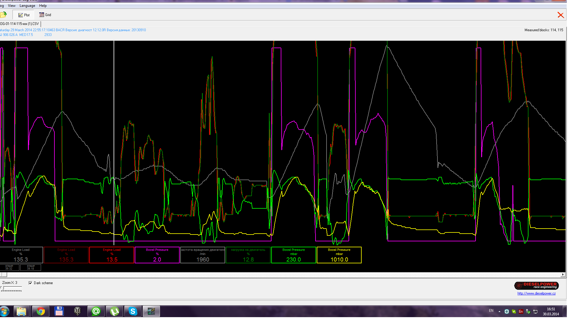 greyserge писал(а):Други кто поможет расшифровать лог турбы, посмотрите пожста. Делал на 3 передаче и газ пол. Турба, такое ощущение, включается после 3 тыс оборотов.