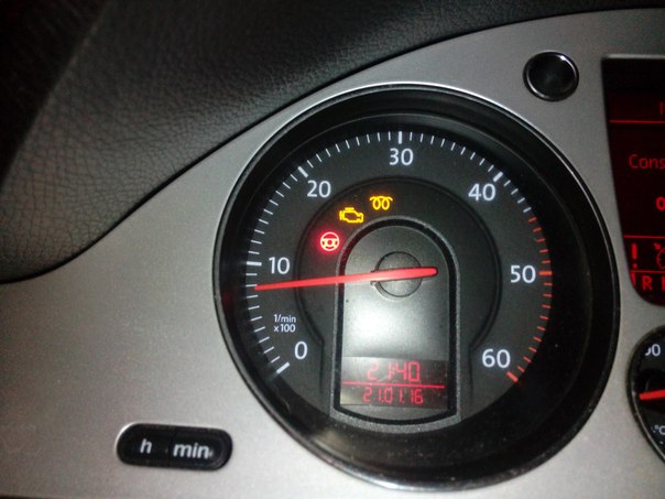 Три комрада из твоего города. Пиши им в личку, пусть помогут считать ошибки, дальше сюда скан выкладывай. Ну или на комп.диагностику читать ошибки, если до комрадов не достучишся. Гадать по приборке дело неблагодарное. Ну и с красной маслёнкой я бы не стал ездить, во избежание больших неприятностей.