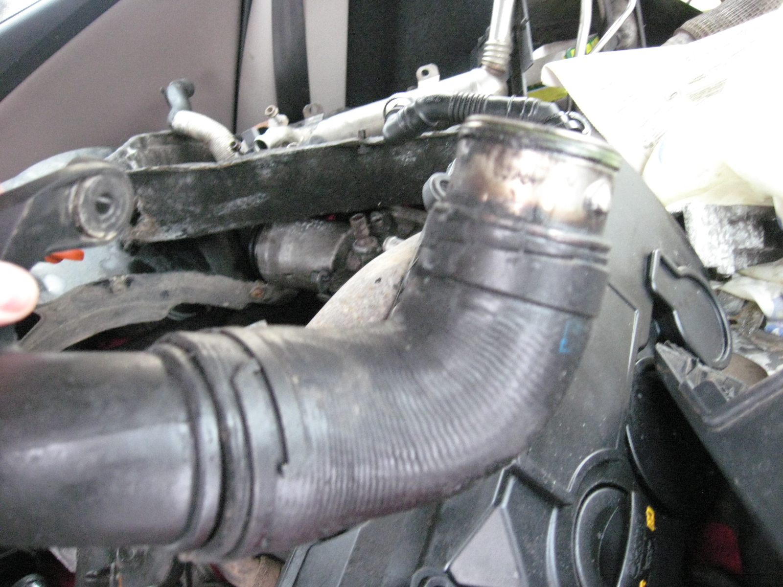 Обведенную на рисунке трубку тоже снимали, и как раз отсюда из двигателя пошел выхлопной дым