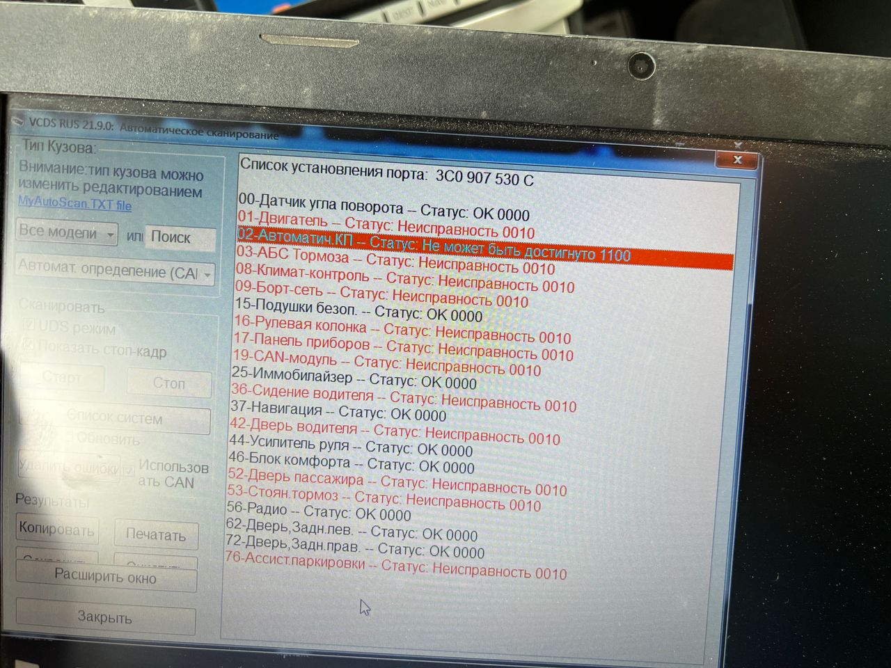 Ksandr писал(а): Сделайте ваг-комом нормальную диагностику на ошибки и выкладывайте весь скан. А не это : "не может быть достигнуто".