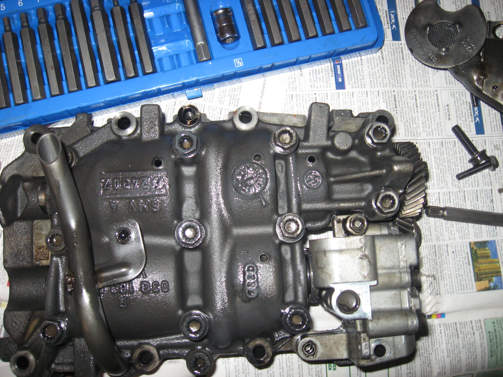 В коробке дифференциала с масляным насосом(2.0 TFSI) заклинило балансиры, маслоприемник чистый, ни стружки, ни грязи, тупо заклинило и оборвало шестерню. Никто понято не может почему, ни официалы, ни ребята в гаражах.