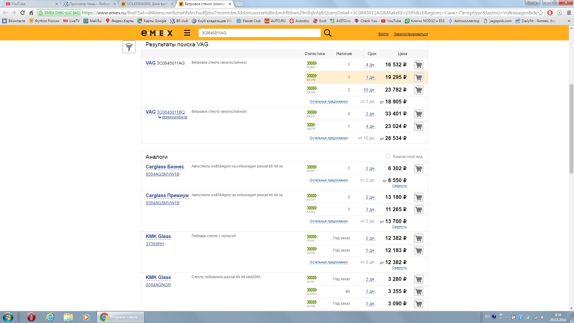 demainst писал(а):Игорь1812 писал(а):На экзисте и емексе разница в цене на стекла очень большая,у меня по вину бьется стекло 3C0845011AG,цена оригинала на экзисте от 19542 р,на емексе то же стекло стоит от 13339 рублей.Ничего такая разница!!!