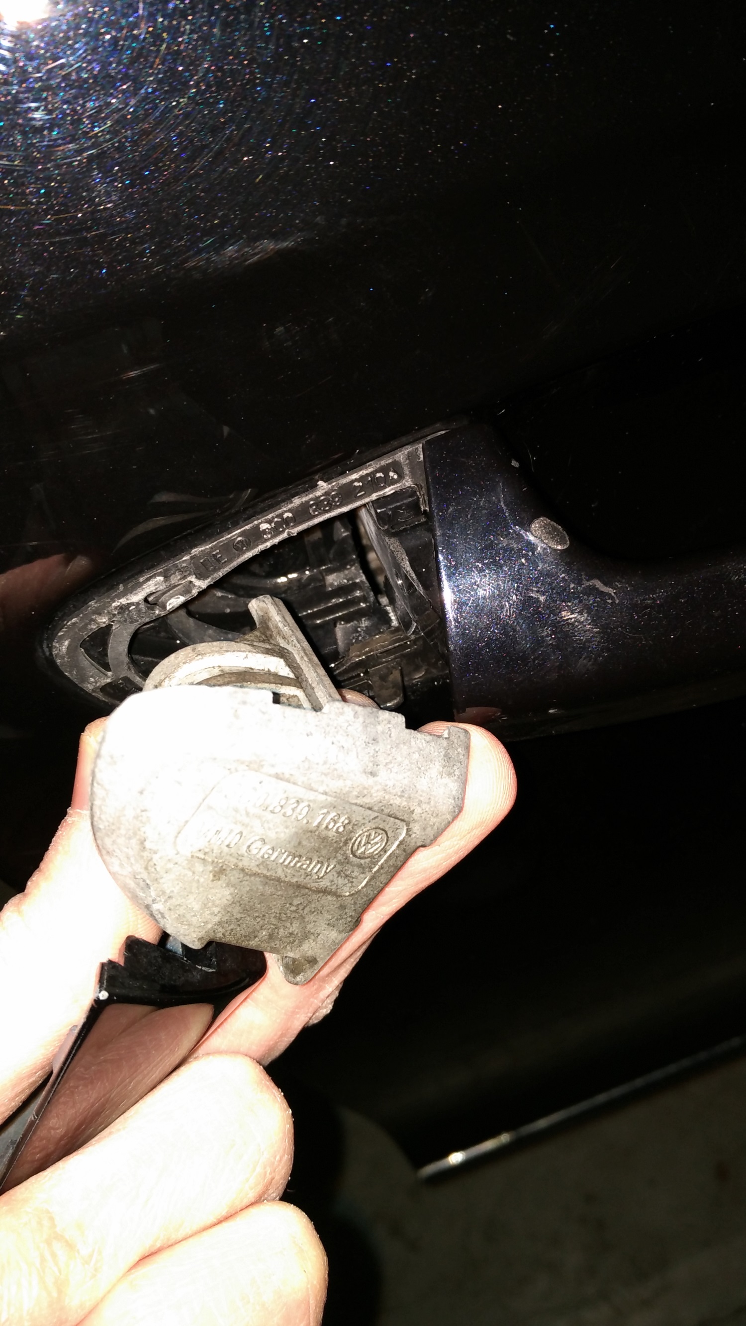 Shurik006 писал(а):Осенью знакомый красил переднюю пассажирскую дверь, т.е. её разбирали. Через некоторое время обратил внимание, что болтается накладка, где должна быть личинка. Вот дошли руки снять накладку и увидеть, что всё это по факту ни на чём не держится. Снял накладку, вытащил металлическую заглушку.