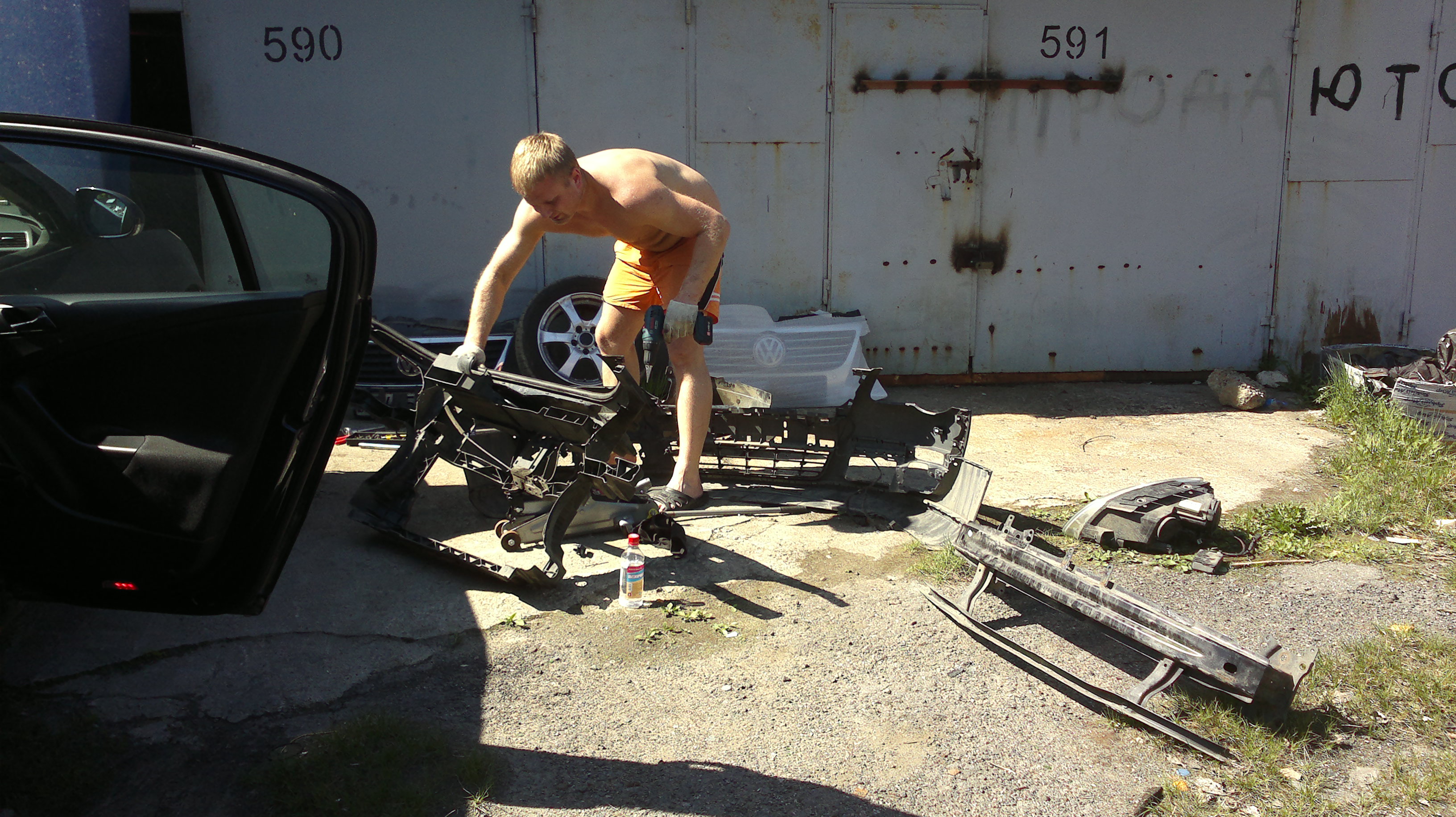 А дальше что!? Открутил 8 болтов телевизора, но он снимается вместе с фарами и радиаторами. Как отсоединять радиаторы разбираться было уже некогда, т.к. разобрал всё в саду и уже вечерело.