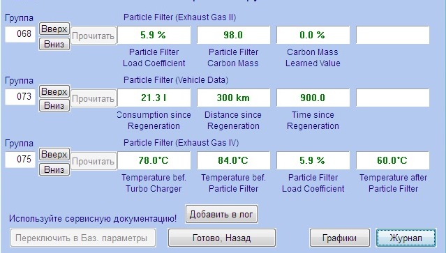 У тебя в 068 группе показывает 83 грамма. Менять DPF надо когда 60 гр. У меня в 068 группе 77 грамма. Мне удалят DPF следующей неделе. Интересно какой у тебя пробег???