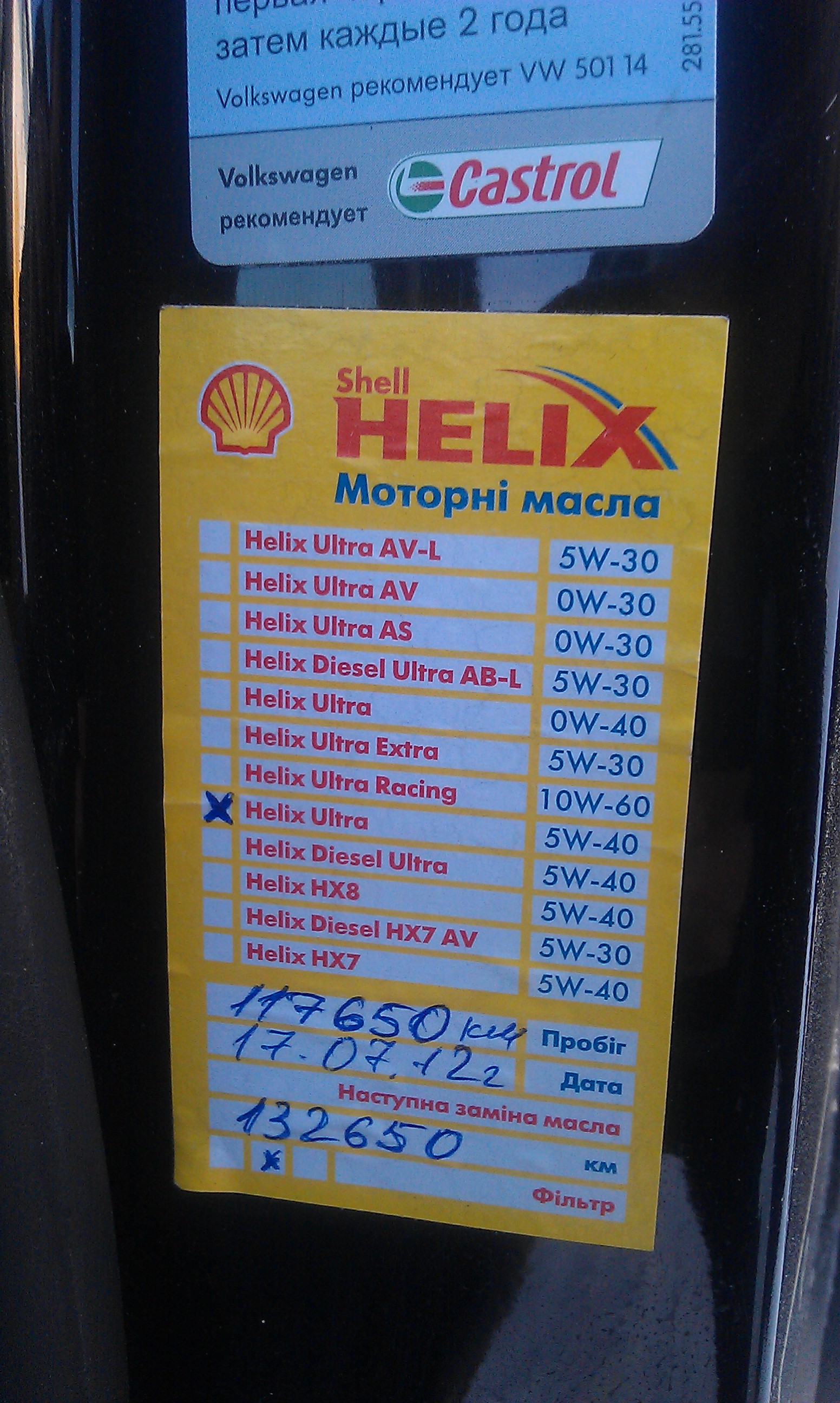 mslava90 писал(а):Здравствуйте , приобрел машинку 2008 год , щас пробег 129.000 под дверью наклейка , о том что масло менять 132650 shell ultra 5w40 , посмотрел в сервисной книге , наряды работ там вроде везде указано longlife 5w30 . последнее TO сделано на украине (Shell Helix Ultra масло 209 l). может они шел 5W40 льют???или галочку не так поставили , может имелось ввиду 5w30. вот маслице уже на минимуме , сегодня хочу литрушку долить... и хрен знает какое купить....