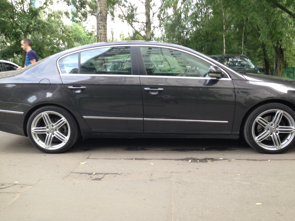 Резина 225*45*17. Фото сделаем вечером, когда будет рулетка нормальная)) С человеком по объявлению я списывался, он сказал что завод у него стоит и он ничего не менял, мол что у него R-Line комплектация. Вин дал свой,по VIN у него перед 3C0 411 105 P, зад был 3C0 511 115 AQ. Замерять не хочет(( Тут дело еще в том, что аммортизаторы Kayba Ultra SR клиренс увеличивают на 1 см примерно. Во всяком случае многие так пишут, после того как их поставят. Они очень жесткие, спортивная серия. H&R или Eibach уже будет сильно низко)) думаю все таки 3C0 511 115 AP на зад будет в самый раз. Фото вечером будет.