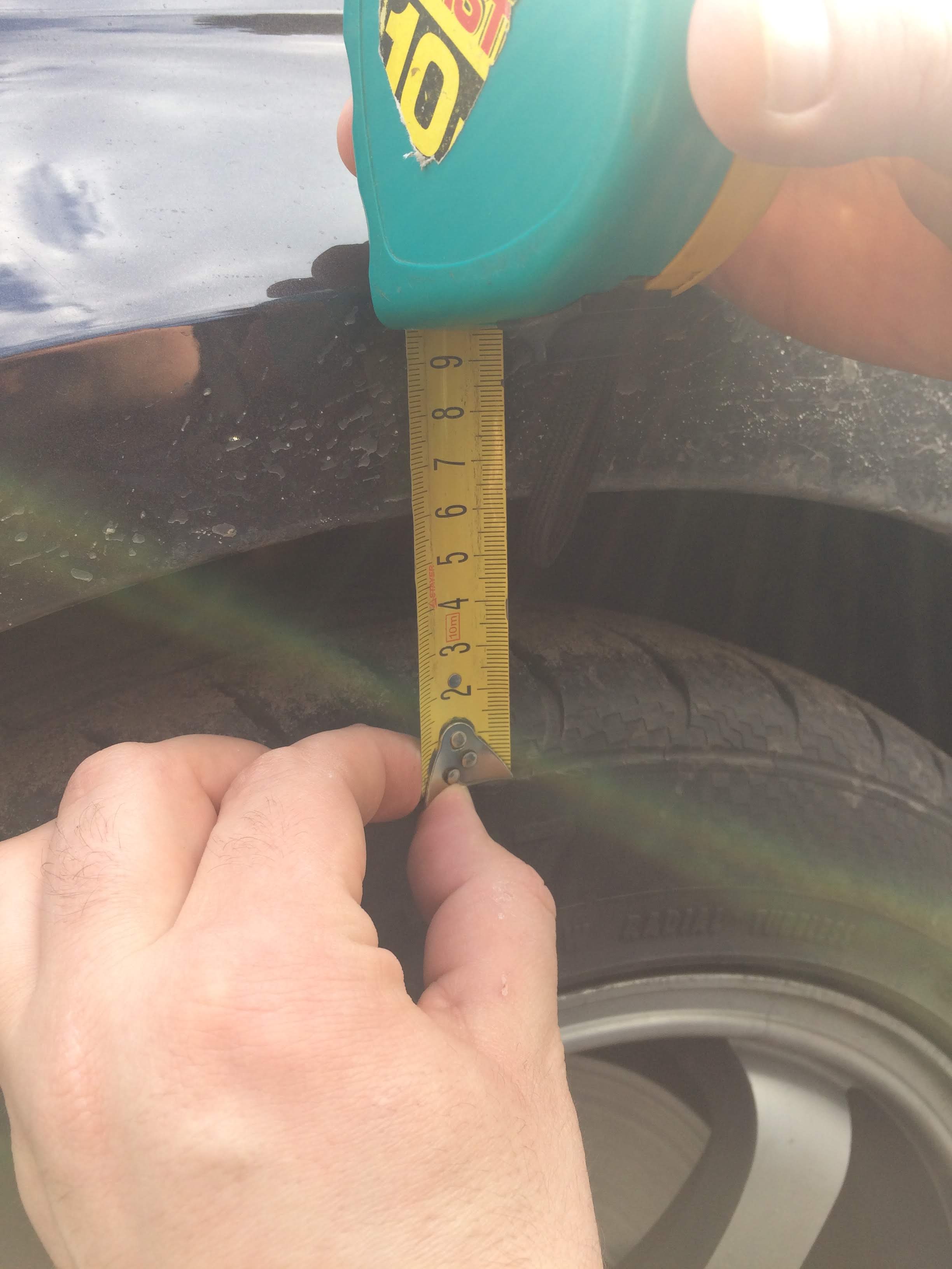 У знакомого тоже Б7? Точно сзади у него тоже 5см? Можете попросить его сделать фото замеров расстояния от арок до колёс спереди и сзади?