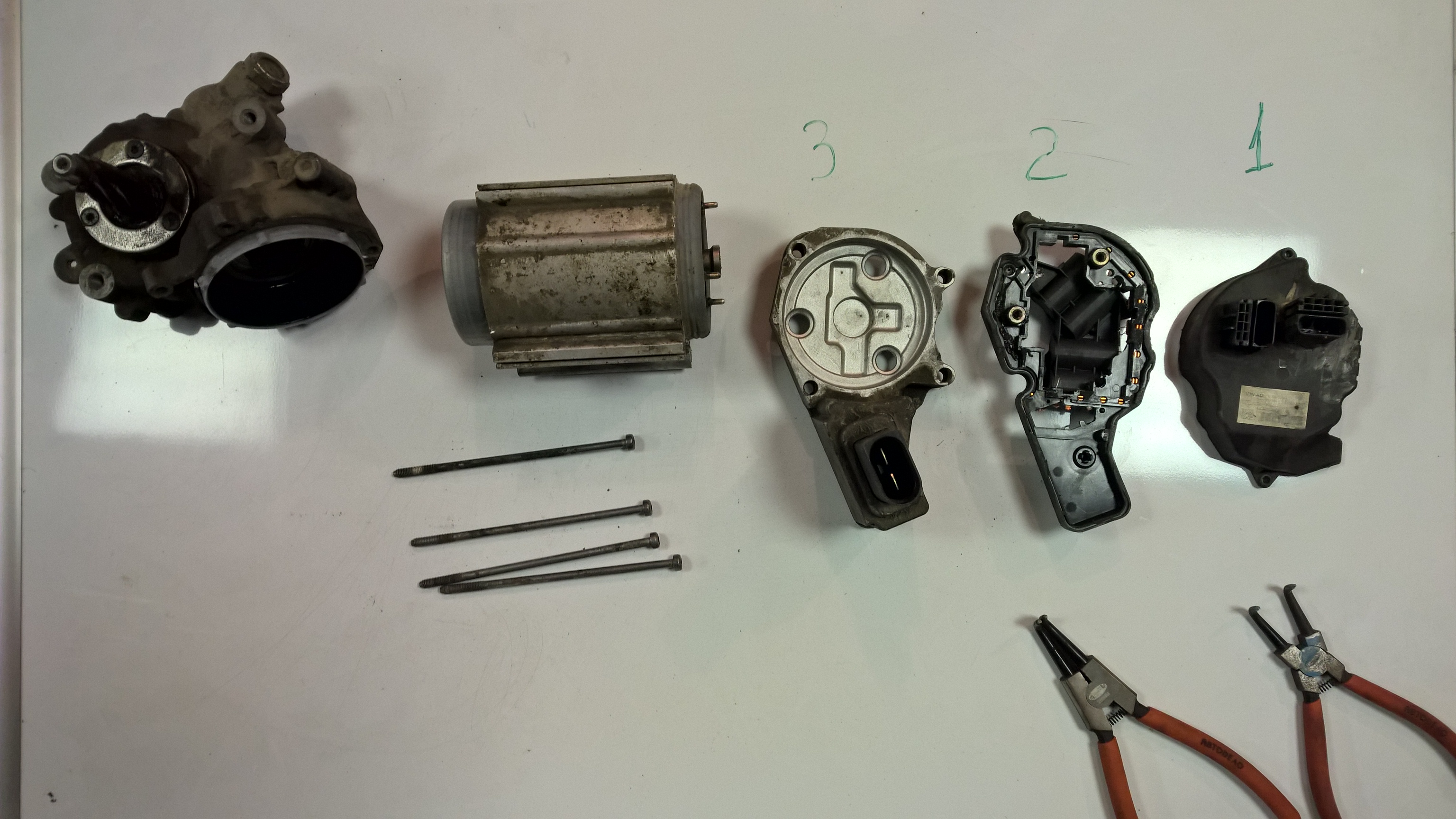 Столкнулся с тем что очень много тем по ремонту рейки, но только механической части, а вот по электрике ничего не нашёл, поэтому создаю отдельную тему. Вдруг кто знающий поможет. В общих чертах началось все в прекрасный солнечный летний день, сажусь, завожу, мерзкий писк, загорелся красный руль. Выдаёт ошибку обрыв цепи электромотора. Путем долгих исследований удалось выяснить что проводка вся целая, предохранители тоже. Переодически шнурком ошибка скидывалась и усилитель работал, но через пару часов снова отказывал. Пришлось все же снять рейку, в сервисе говорят что обычно плату заливает водой и она ржавеет отсюда причина неконтакта. Осталась самая малость добраться до нее. Все у кого не спрашивал говорят что при разборке что нибудь да отламывалось и безболезненно провернуть этот процесс не получалось и все заканчивалось заменой рейки. Вот собственно и вопрос: КТО НИБУДЬ РАЗБИРАЛ, А ПОТОМ УДАЧНО СОБИРАЛ ЭЛЕКТРОМОТОР?