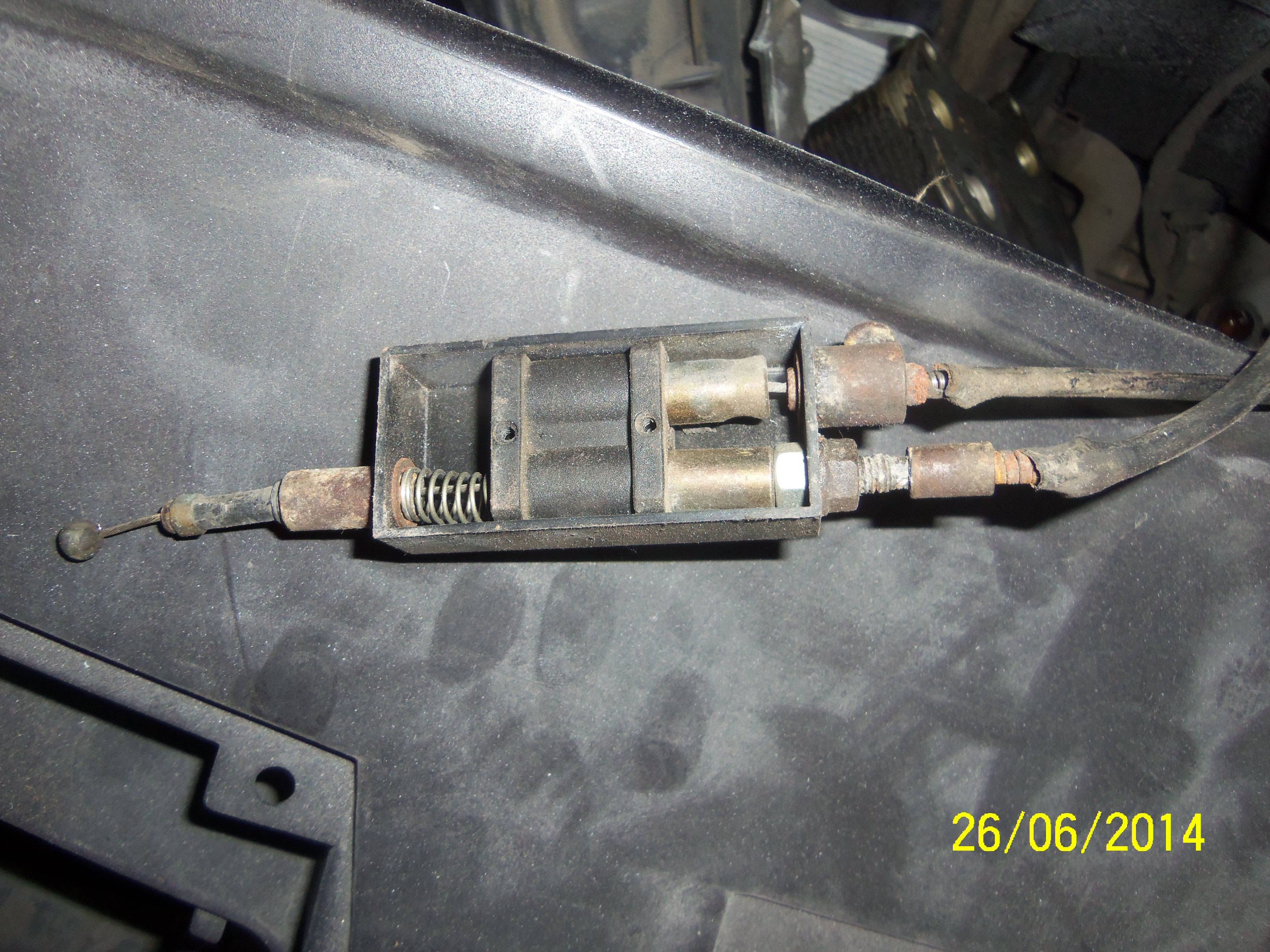 Посмотри на самом капоте должен быть штырь отдельный который работает вместе с тем замком что сфоткан. Эта чудо коробочка была подключена куда?