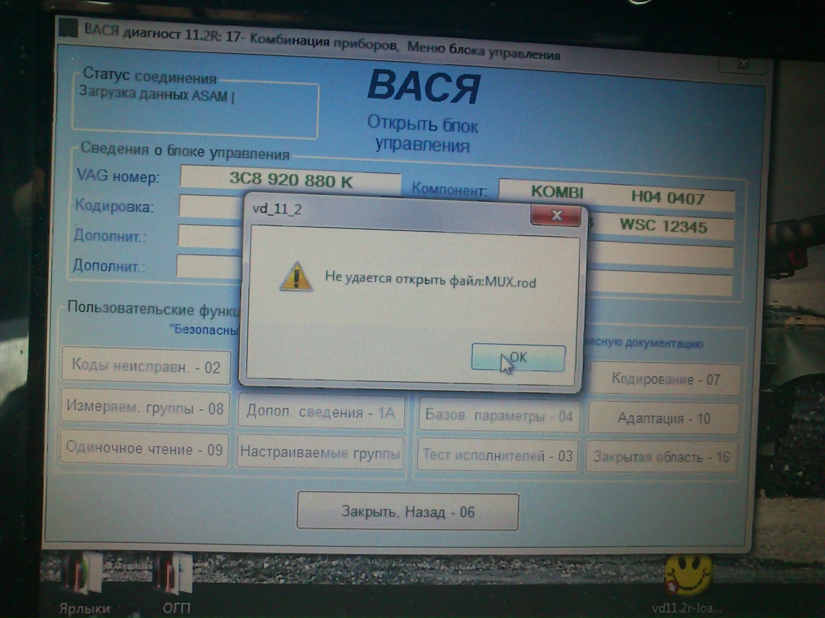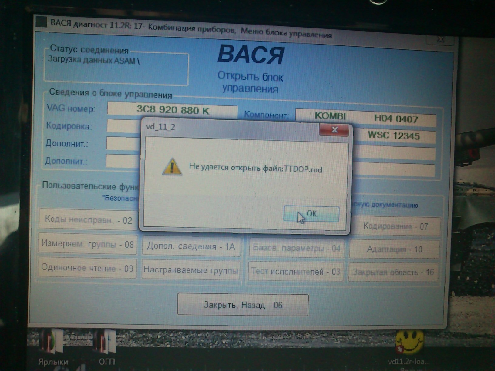 RUS.YRN писал(а):Паша,спасибо за прогу!Прога установилась,тест шнурка проходит опять только если откатить дату на 01.05 13.После того как прошел тест,сохраняю.Пытаюсь зайти в какой нить из блоков ,а мне пишет вот что