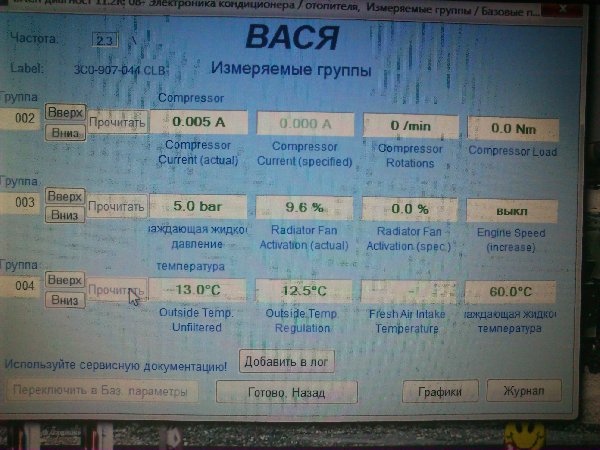 Александр85 писал(а):Снимай клапан и чисти. Залип он и все. А так надо тему читать и все станет ясноRUS.YRN писал(а):Съездил я на обеде к заправщикам кондиционеров.Одна радость,что венты всё таки включились,но от нагрева двигателя.При включении кондея венты так и не включились.Проверили систему система в норме,не хватало всего 150 гр.Но это не спасло от проблемы.Говорит даже с таким объемом они бы включились.Снял фишку с клапана проверил тестером напруга есть.Поставил другой датчик давления всё аналогично.Принес б/у компрессор тоже от какого то VW присоединил его венты также не включились. Говорит или дело в самом клапане или в самом компрессоре.Как всё таки понять в чём проблема,действительно ли в компрессоре?Меняется ли отдельно клапан?Что то 14 т.р. за компрессор отдавать не хочется