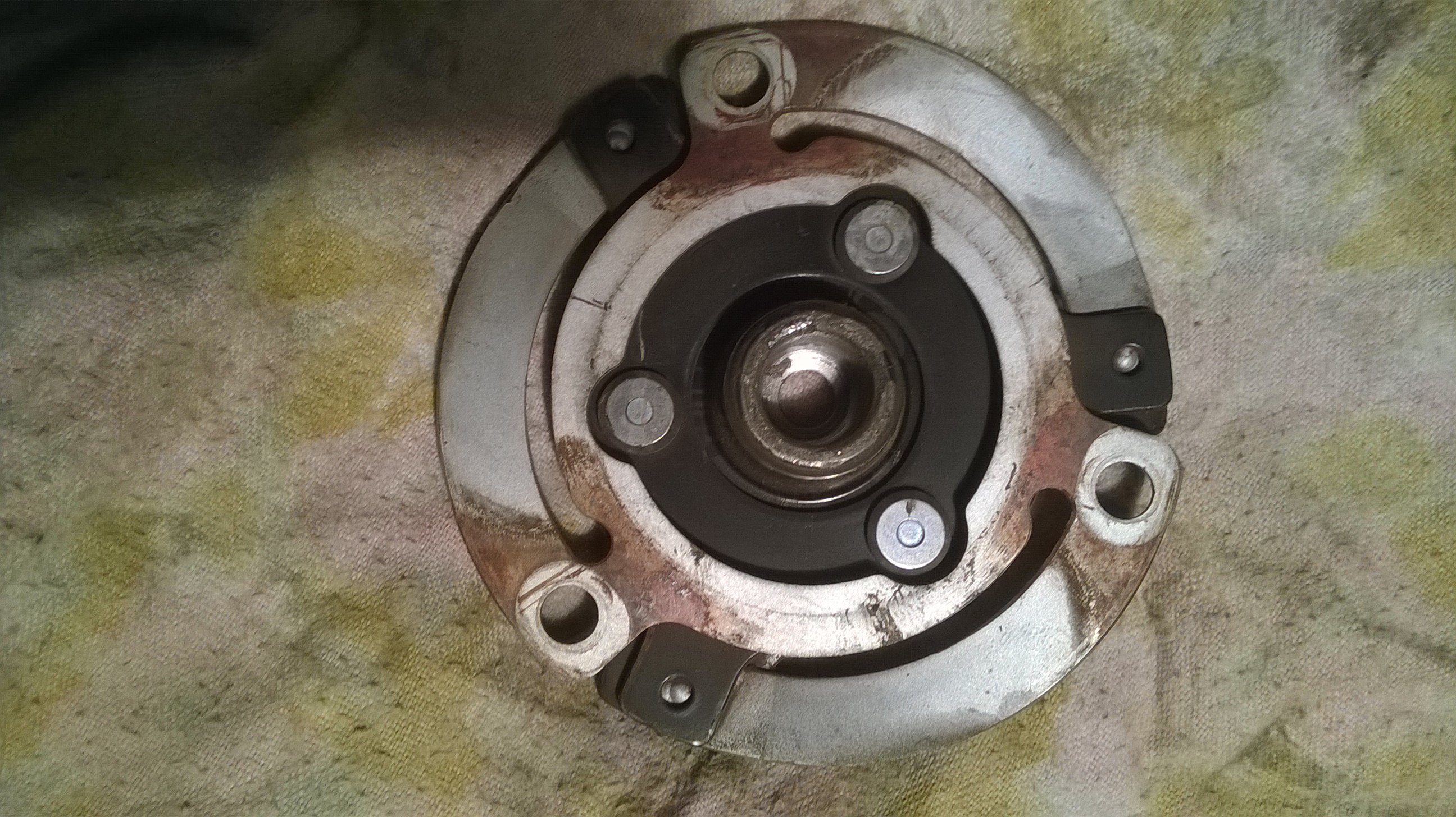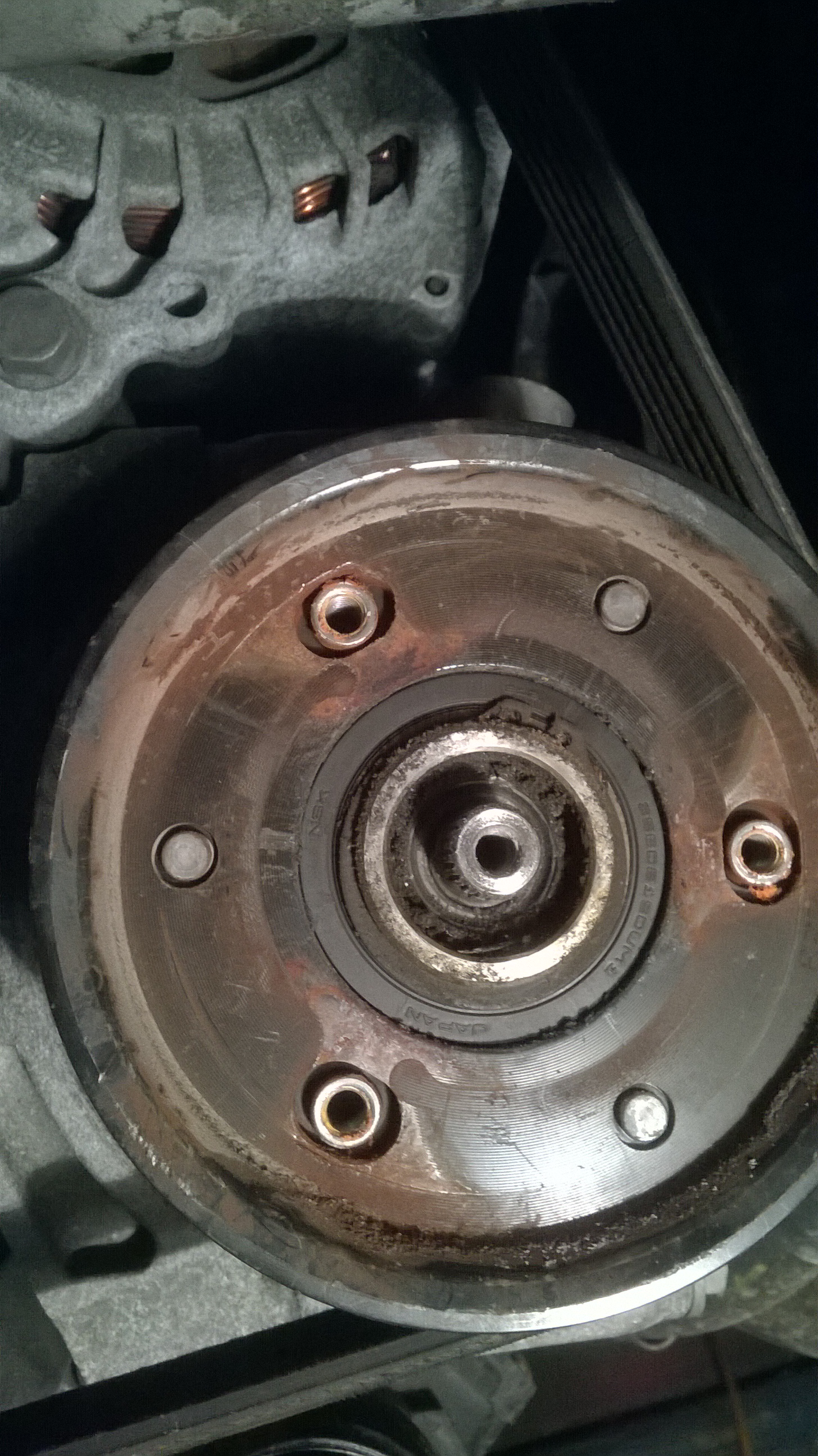 Вобщем снял колесо. защиту, скинул приводной ремень, открутил обгонную муфту, снял ее с компрессора и увидел