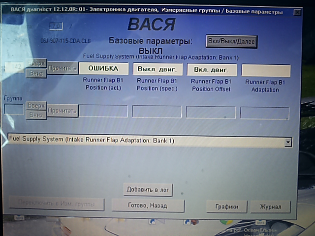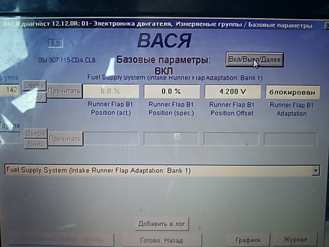 ELSA предписывает при замене коллектора, адаптировать датчик положения заслонок к блоку управления двигателем. Коллектор не менял, но по опыту товарища GREG_RS с пассат клуба решил тоже попробовать. Серега делал посредством ВАСИ. Группа измеряемых блоков 142.