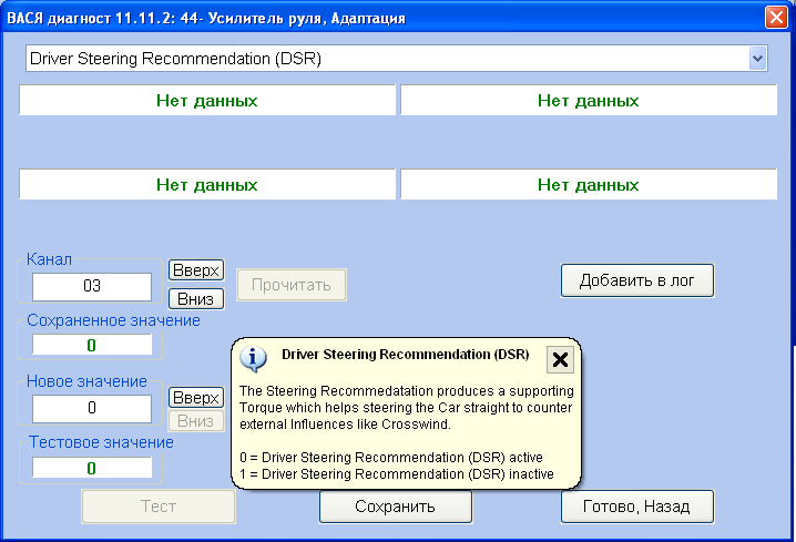 Alemania писал(а):Проверь каналы адаптации 44 блока. DSR должно быть выключено