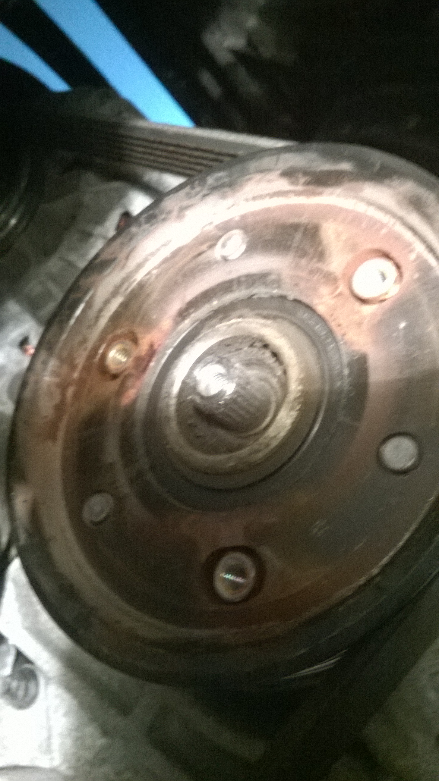 Вобщем снял колесо. защиту, скинул приводной ремень, открутил обгонную муфту, снял ее с компрессора и увидел