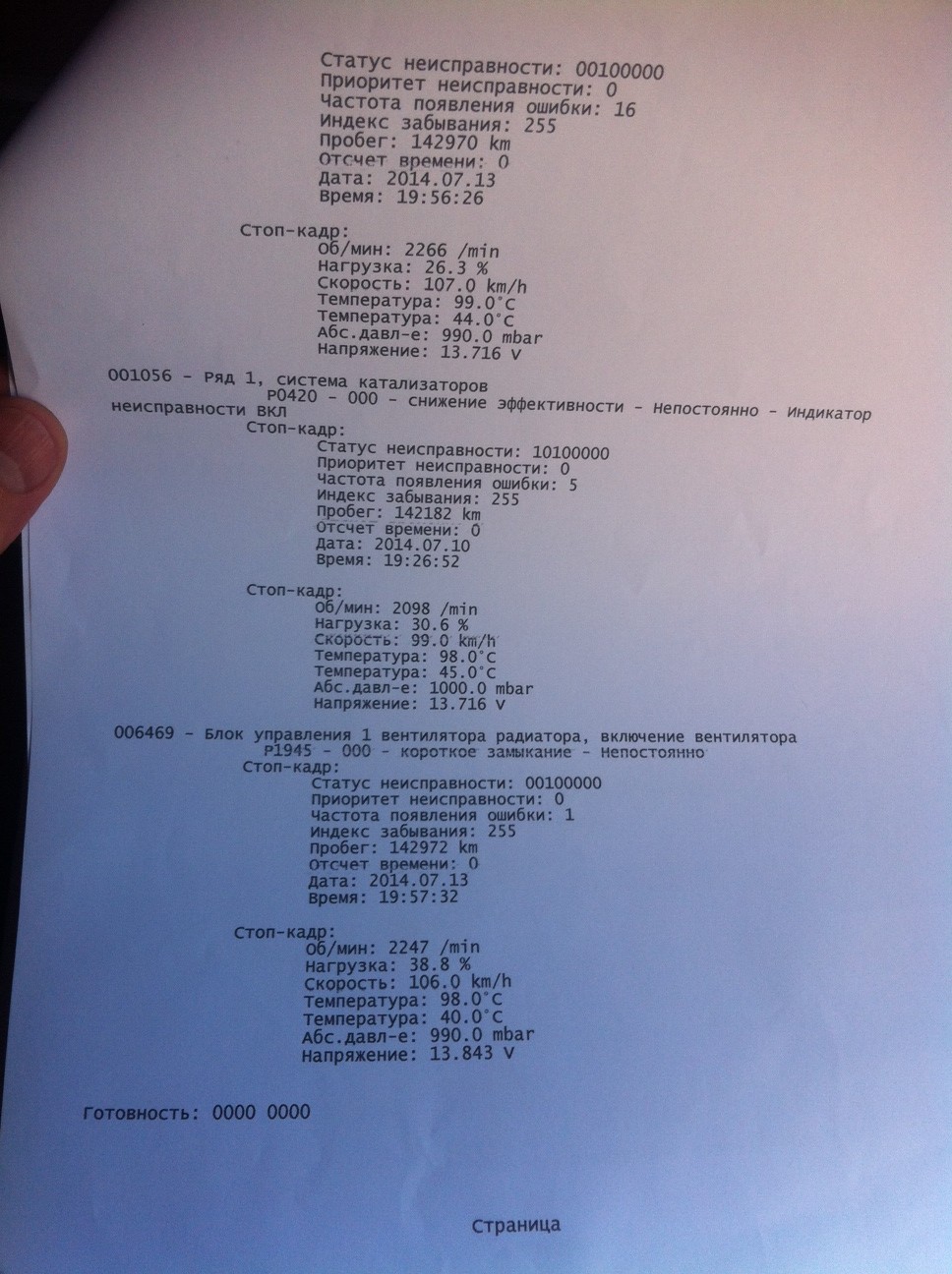 Посмотрите, пожалуйста, ошибки. Загорелся "чек", по итогам диагностики сказали, что скорее всего был залит плохой бензин. Помимо этого приговорили к замене Вентиляторы охлаждения ДВС.