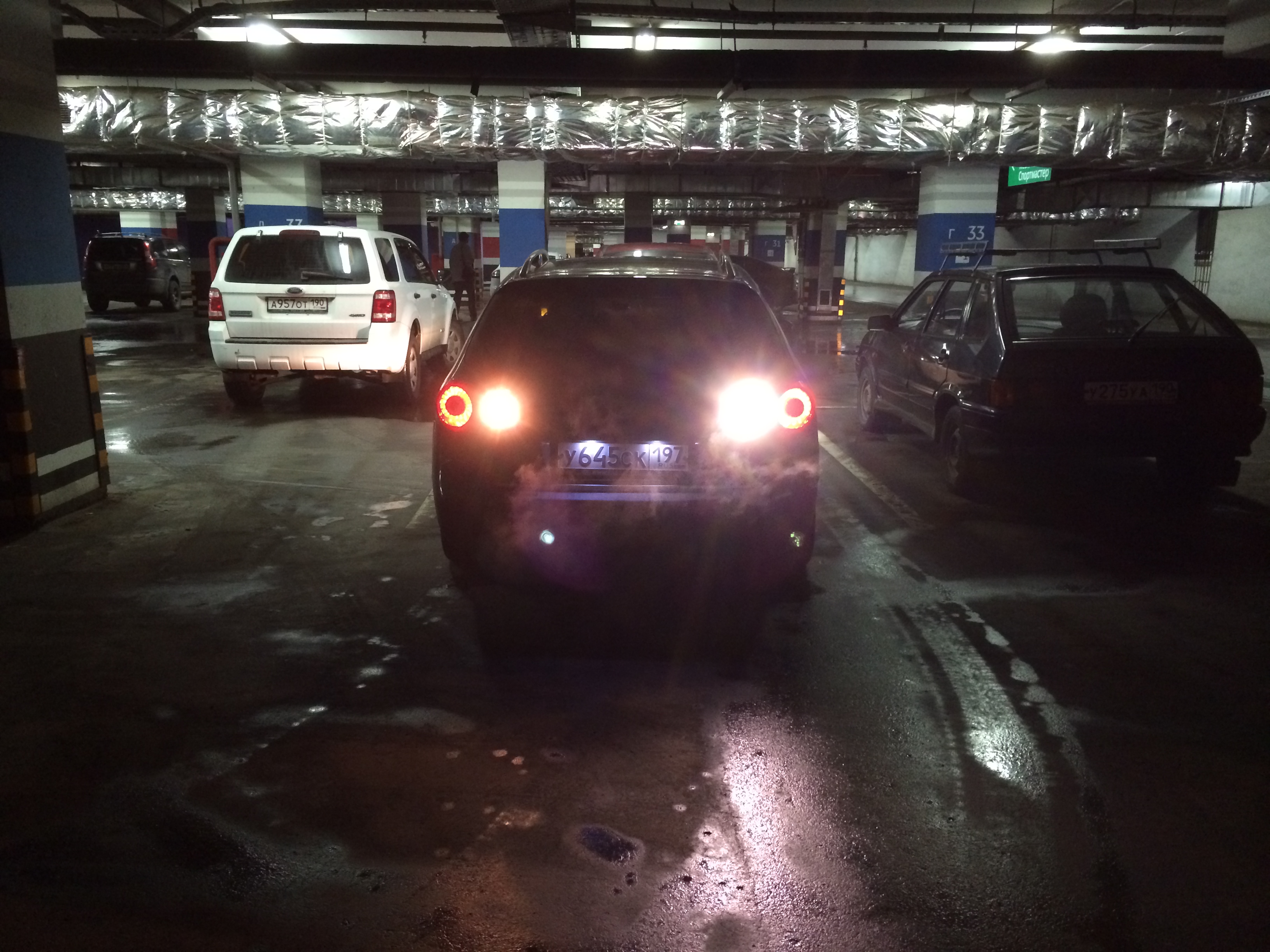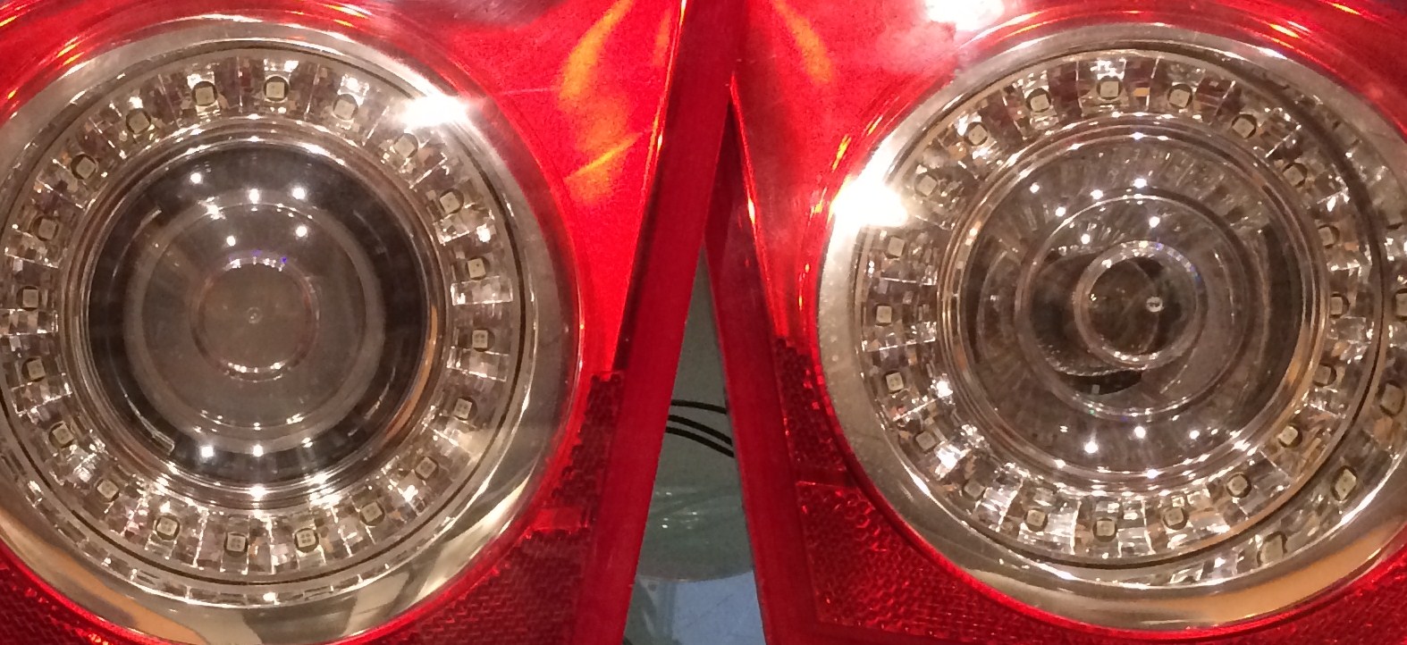 Фото не очень, но, что диод светит лучше, понять можно. Здесь два задних хода, правую сторону освещает стандартная лампа.