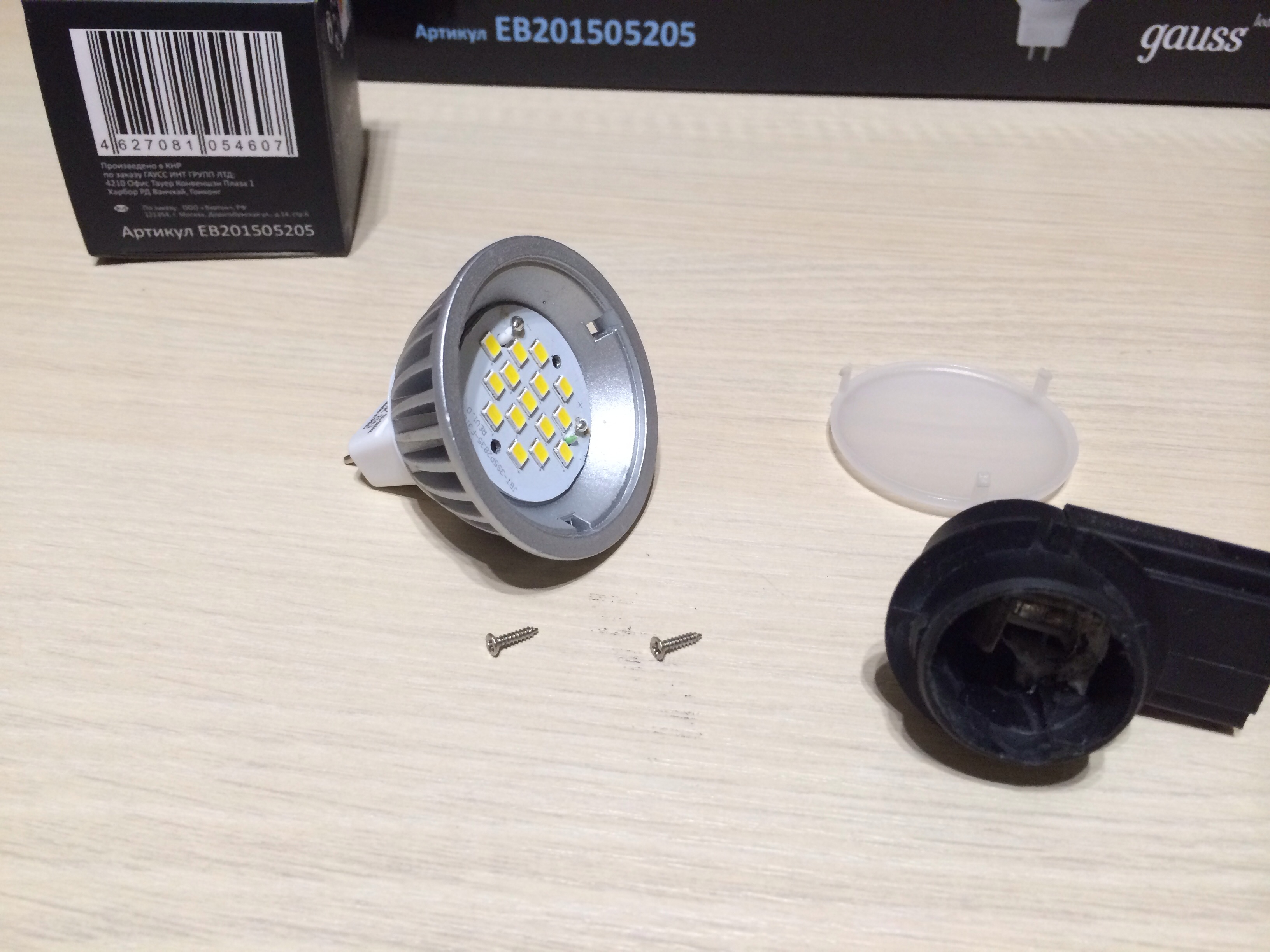 Тут выяснилось, что одна из купленных ламп неисправна. Попытался разобрать лампу - удачно. Стекло-светорассеиватель на трех защелках, плата на двух саморезах.