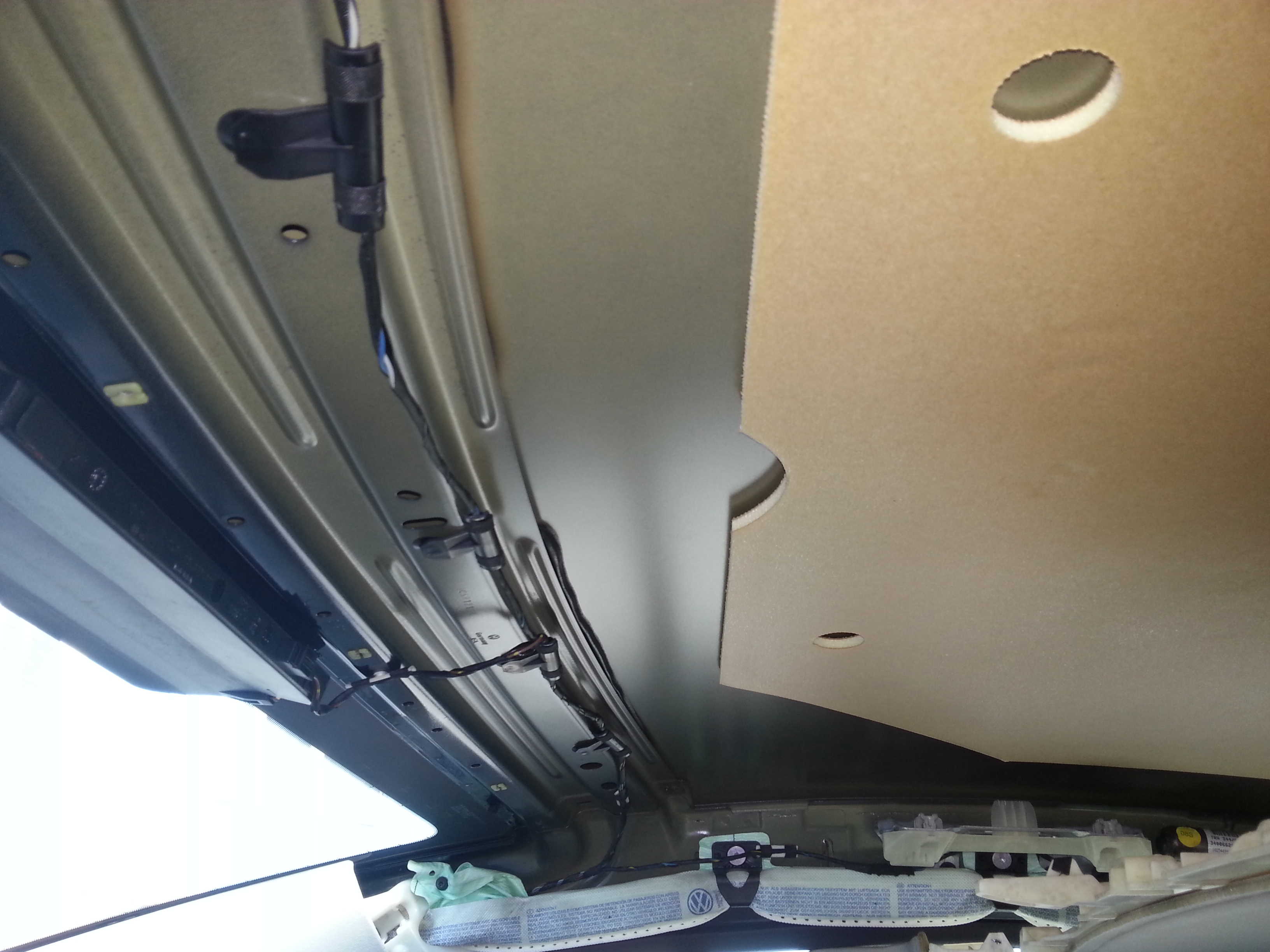 Над дверьми располагаются подушки безопасности, под них ничего проводить нельзя, только сверху: