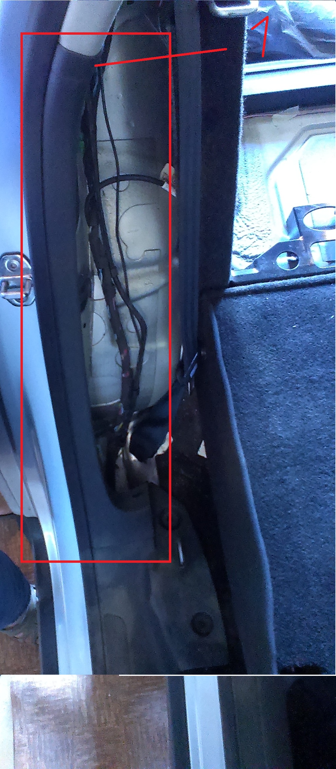 И осталось провести провод к дисплею в салон. Я не хотел разбирать обшивку порогов что бы ввести кабель в заводской металлический короб для проводов поэтому я наш кабель просто пальцами засунул под обшивку порогов.