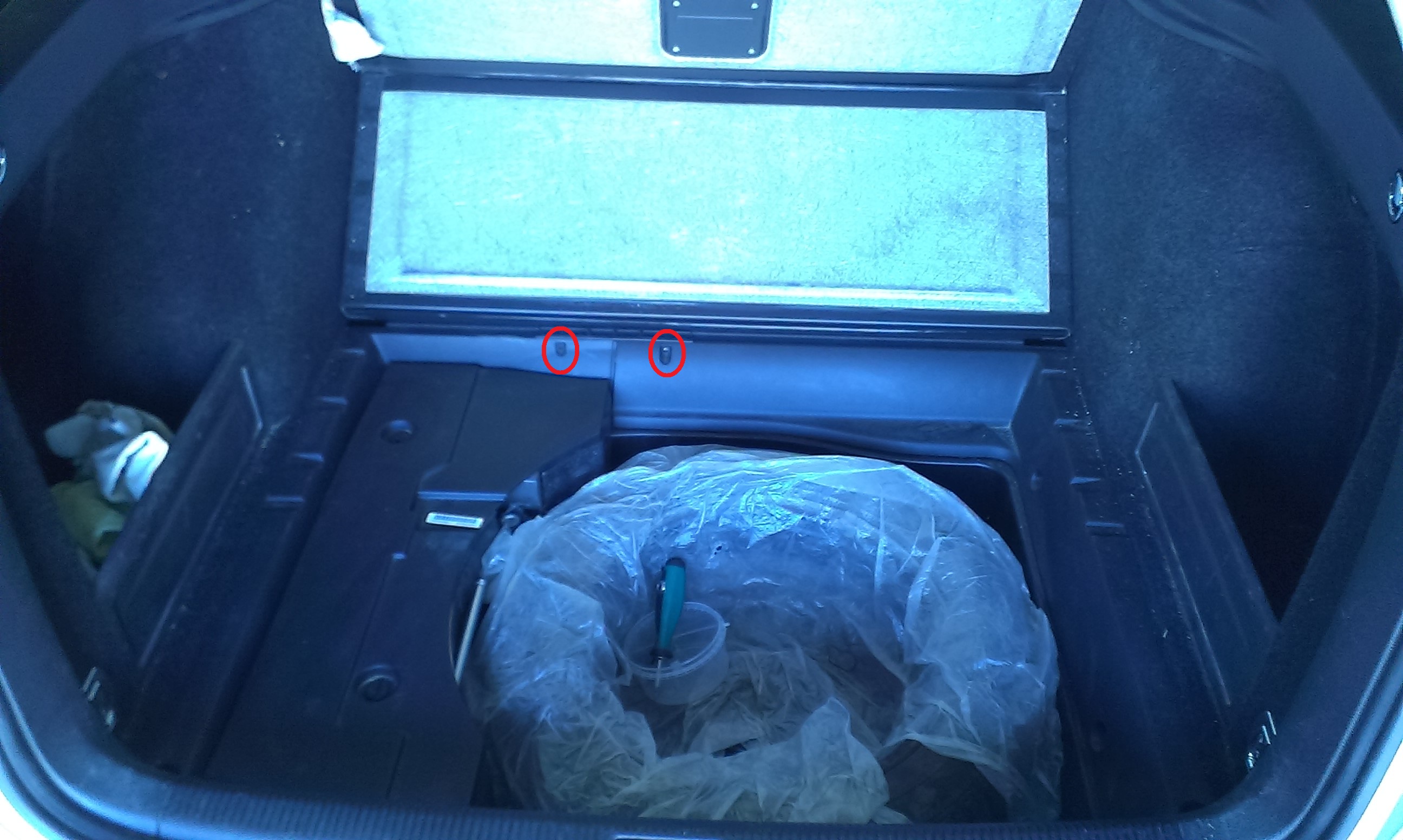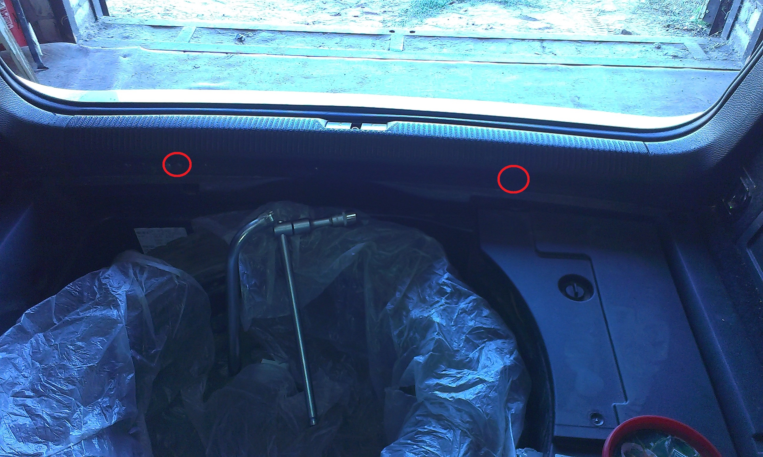 для упрощения работы рекомендую снять крышку отсека под запаску, мне она очень мешала. Снимается элементарно, подымаем крышку, откручиваем два самореза, и вынимаем крышку с багажника