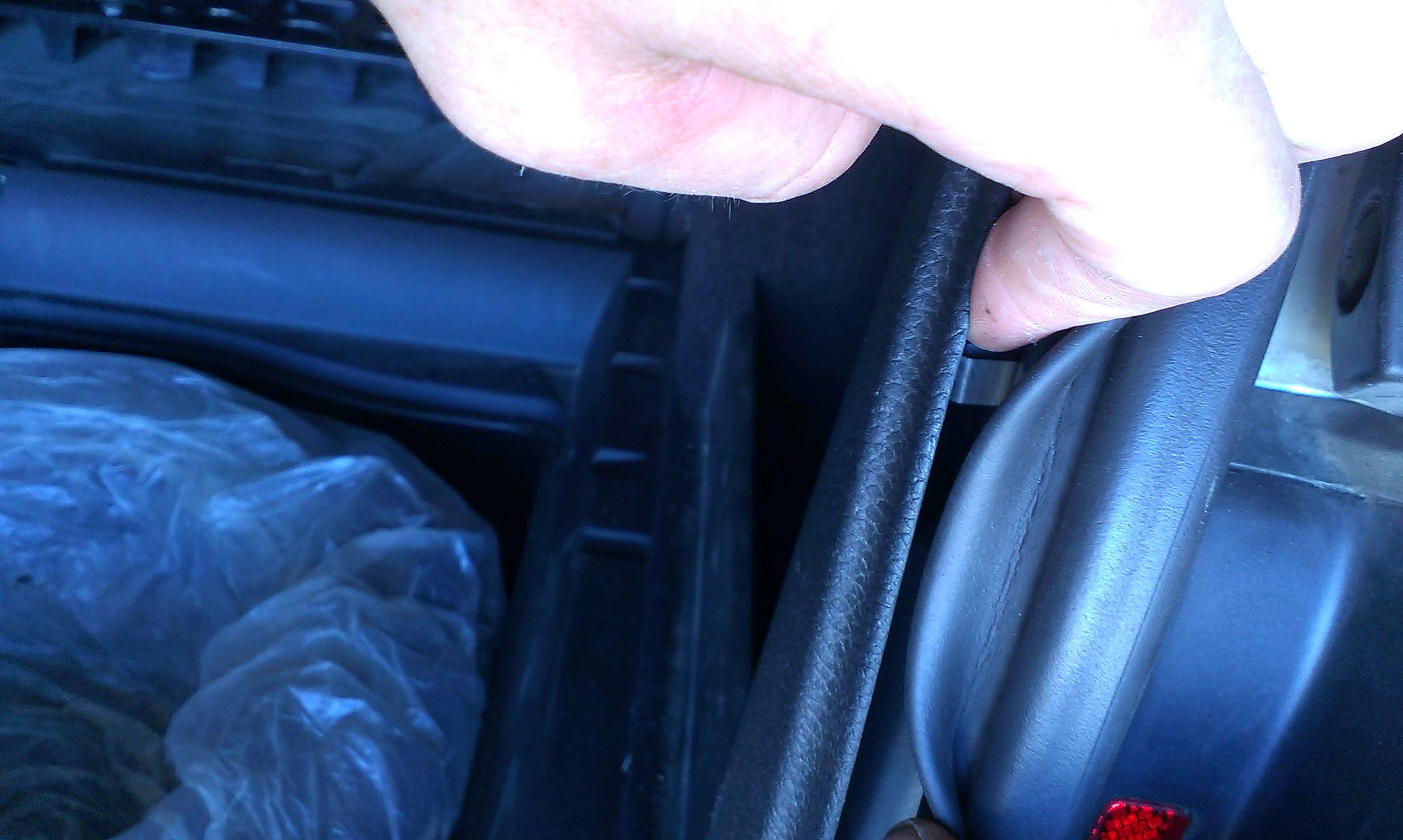 вся боковая обшивка держится на 6 металлических клипсах(крепкие и надежные) и 2 защелках, залазим пальцем под резинку и сдергиваем обшивку внутрь, сделано все довольно крепко и надежно, но лучше без фанатизма