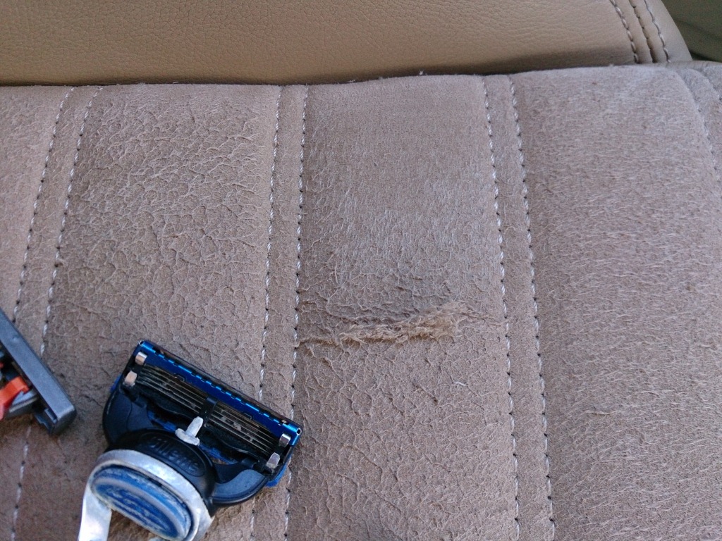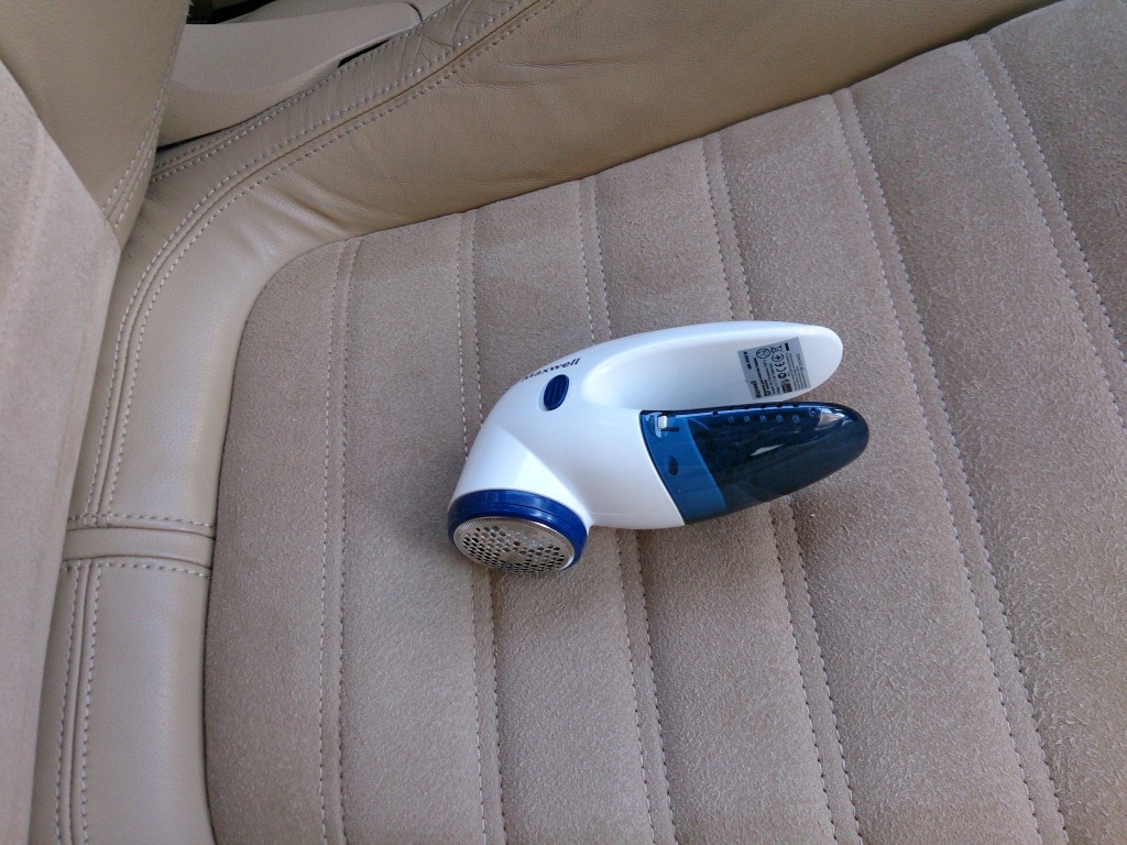 Всем доброго дня. Недавно приобрел "Фашиста", очень мне он понравился 8-) , мощный и грациозный. Салон светлый из кожи и Алькантары. Алькантара скаталась от времени и образовались катышки. Искал в сети как от них избавиться и увидел предложение использовать машинку для очистки ткани. Побывал использовать бритвы различных производителей, но эффекта от них мало. Купил машинку за 290 рублей в М-видео и решил проблему за 5 минут! Надеюсь будет полезным мой опыт.