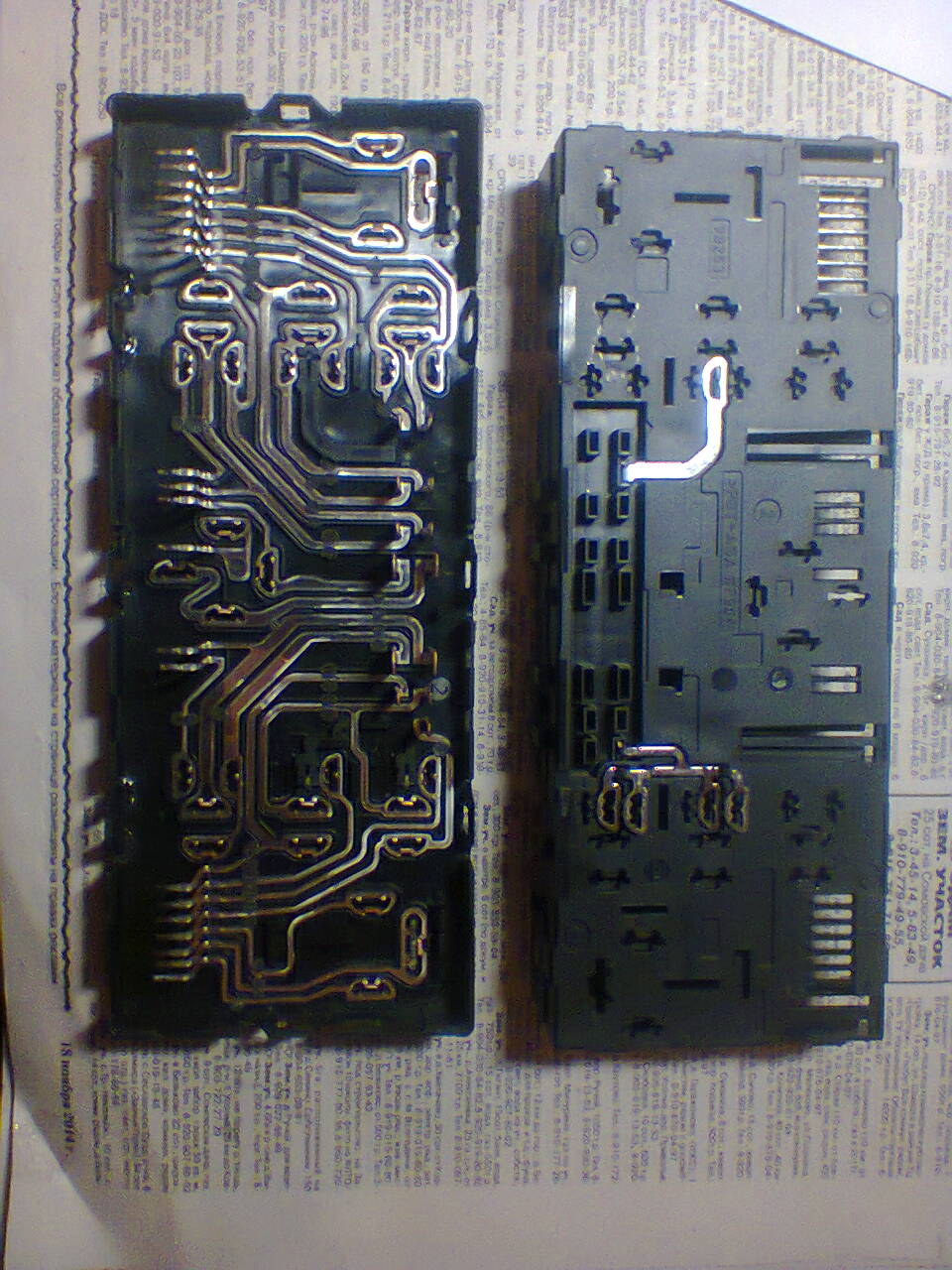 3. Сборка контактов в пластиковом боксе . Подгораний и повреждений не обнаружено. Плата управления выпаивалась полностью. На обратной ее стороне дефектов также нет.