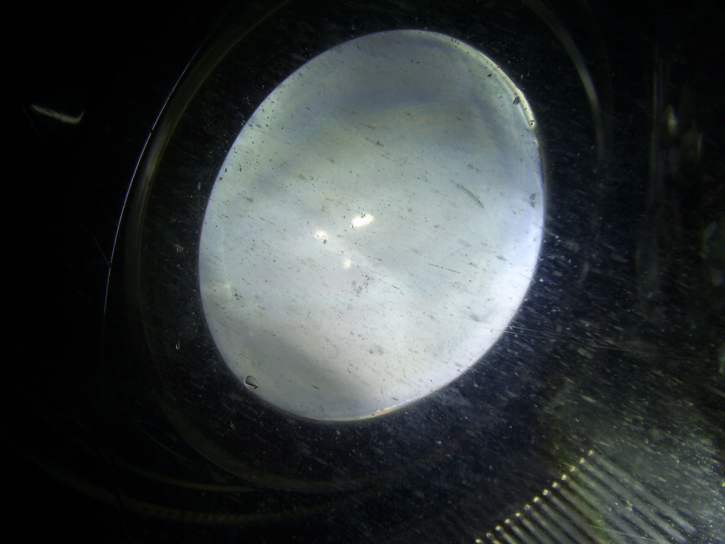 Сфоткай её спереди под небольшим углом (по вертикали) - ракурс не очень удачный, при таком ракурсе даже грязная линза выглядит чистой.
