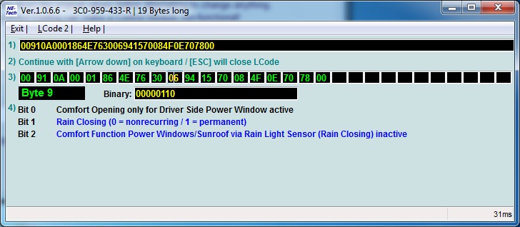 sergilyo писал(а):Ребята выручайте....46 блок 6 байт 6 бит...включил таким образом доводку стекол с ключа...в результате при нажатии и пару секунд удержании кнопки на ключе и в дальнейшем ее отпускании поднимается только водительское стекло....пассажирское работает так как и работало в штатном режиме..т.е кнопку нужно держать все время...т.е по факту эти настройки которые я включил в 46 блоке повлияли только на водительское стекло...электропакет у меня передний...может кто подскажет можно ли это безобразие как то настроить????????