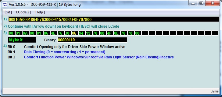 Второй бит - функция закрывания окон / люка крыши при дожде не активна.