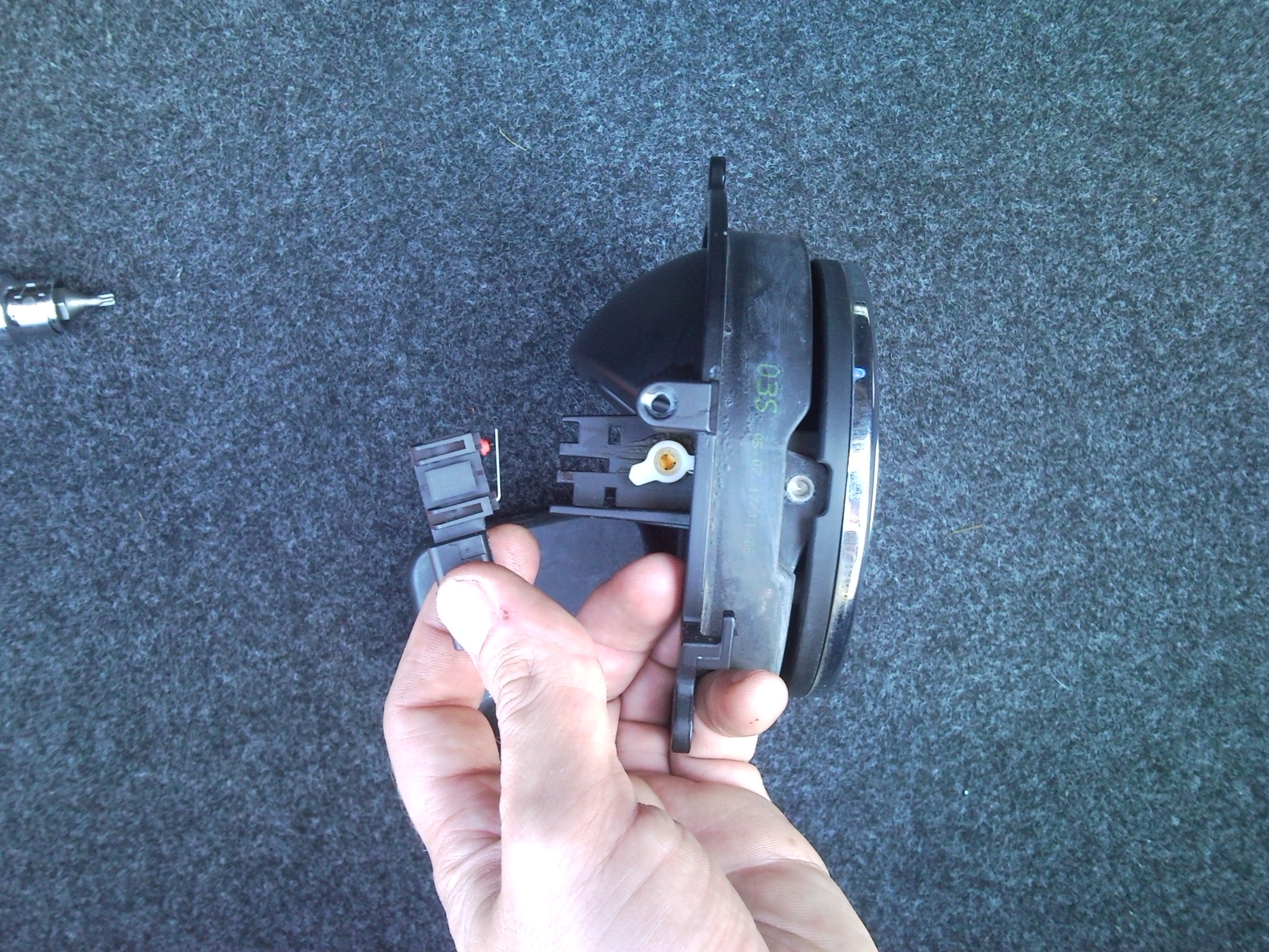) и в ранних немецких. Потом вместо ручки сделали лючок в обивке, его надо открыть и пальцем провернуть колесико (оно чаще всего белое), к которому цеплялся тросик от вышеупомянутой ручки.